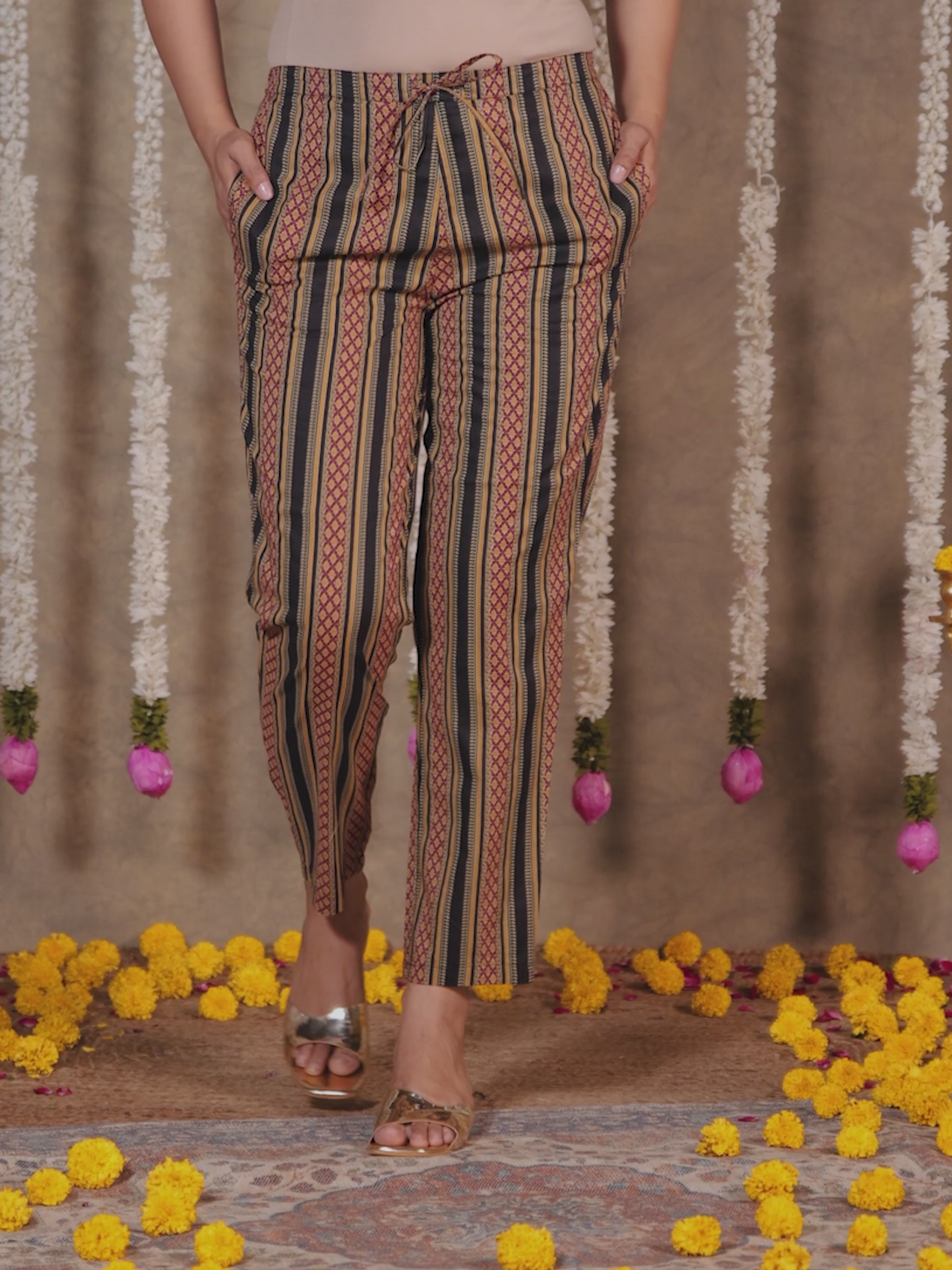 Crafted from Soft Cotton, these Black bottoms are designed for all-day comfort. The chic Striped work adds flair, and pockets provide convenience for carrying essentials. Great for casual days, shopping trips, or work, these bottoms pair effortlessly with your favourite tops. Their durable design and easy maintenance make them a practical staple.