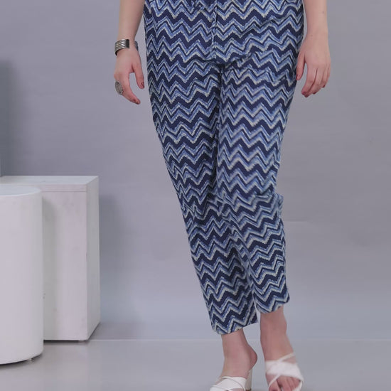 Crafted from Soft Cotton, these Indigo blue bottoms are designed for all-day comfort. The chic Striped work adds flair, and pockets provide convenience for carrying essentials. Great for casual days, shopping trips, or work, these bottoms pair effortlessly with your favourite tops. Their durable design and easy maintenance make them a practical staple.