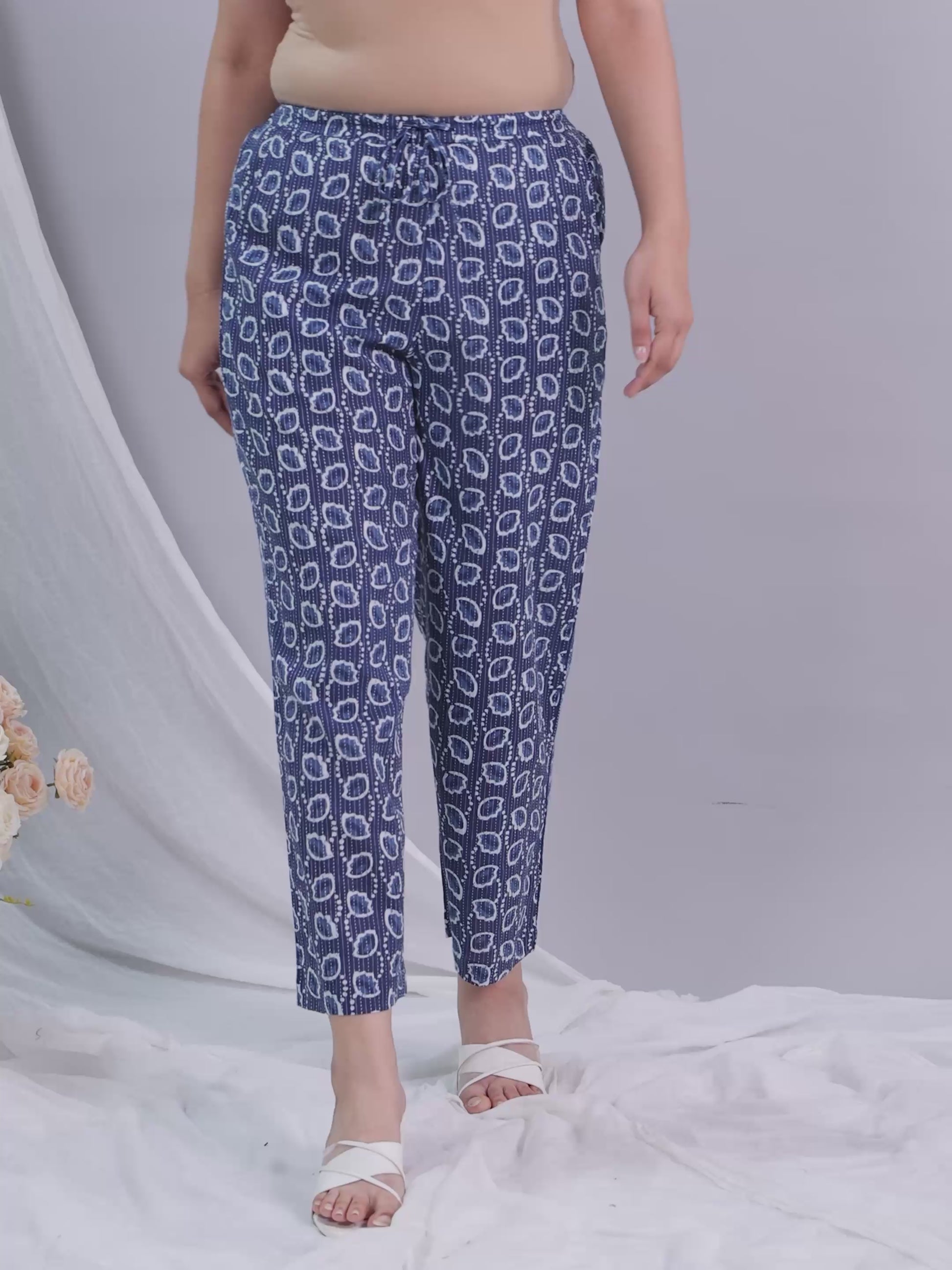 Upgrade your wardrobe with these Blue bottoms made from lightweight Kantha Cotton. The Floral accents bring subtle charm, while pockets make them practical for all-day wear. Perfect for pairing with ethnic kurtas or western blouses, these bottoms are a go-to choice for comfort and style. Easy care ensures they stay fresh season after season.