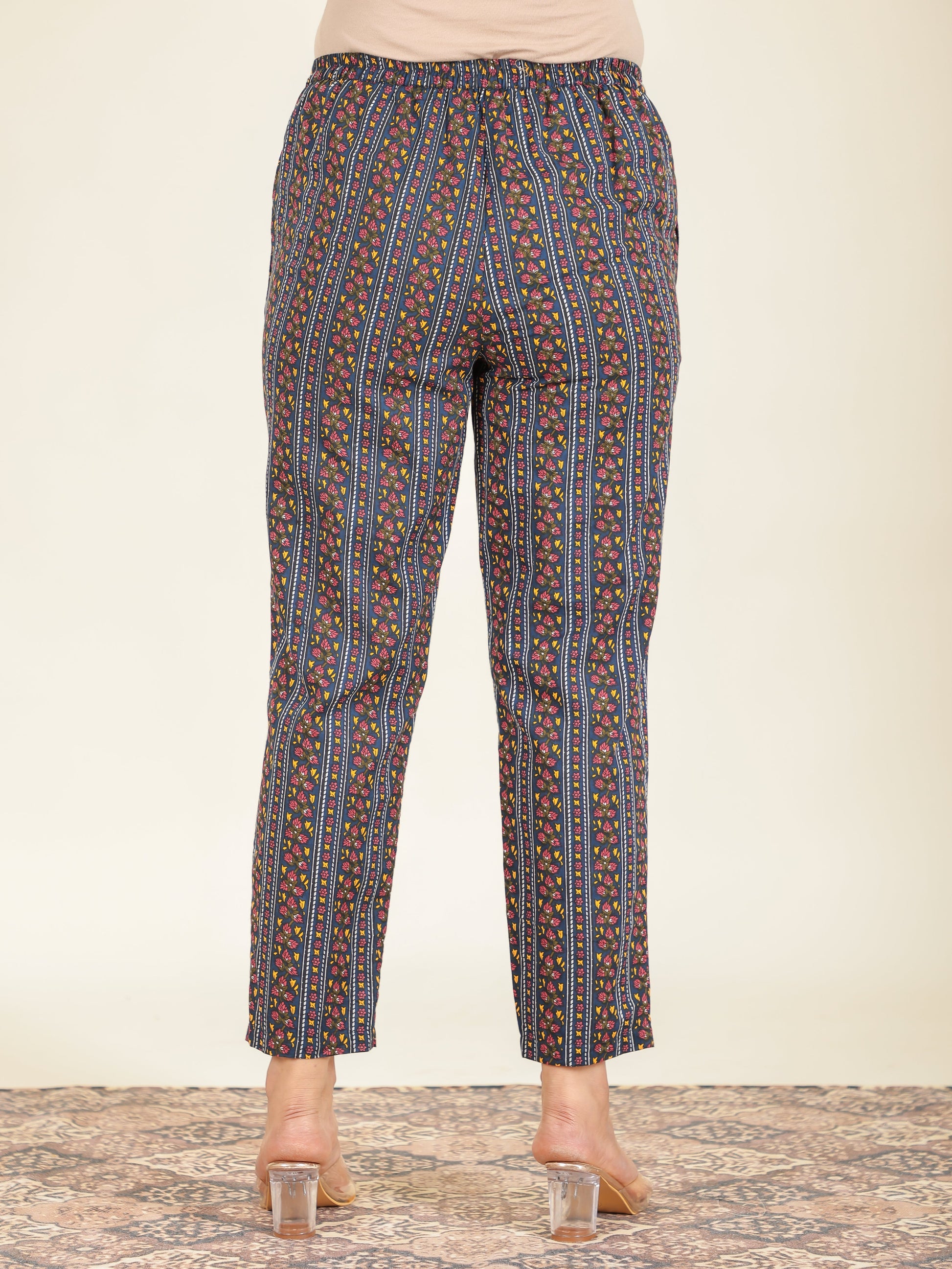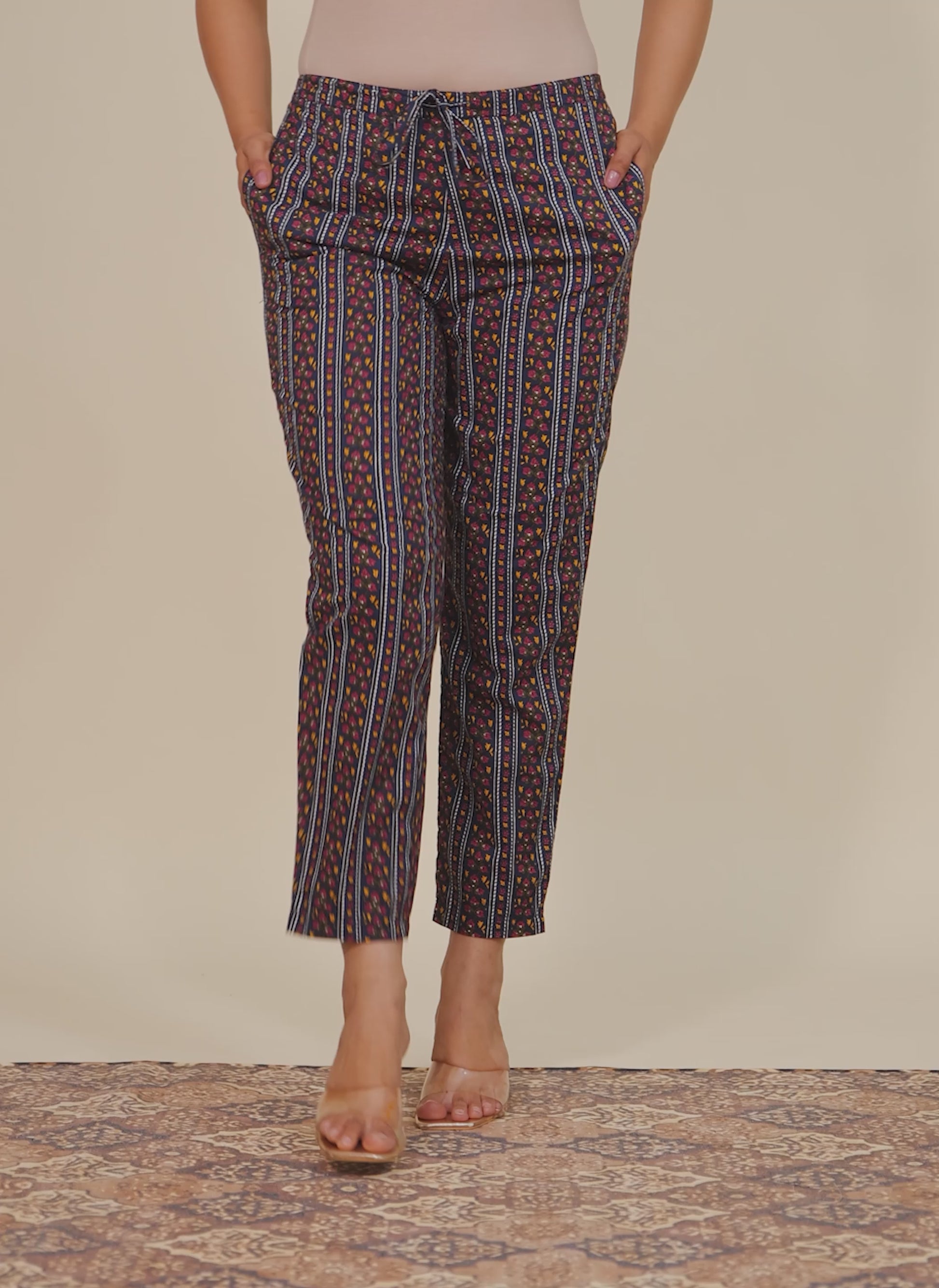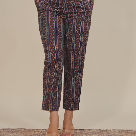 Soft Cotton Striped Navy Blue Tapered Trousers