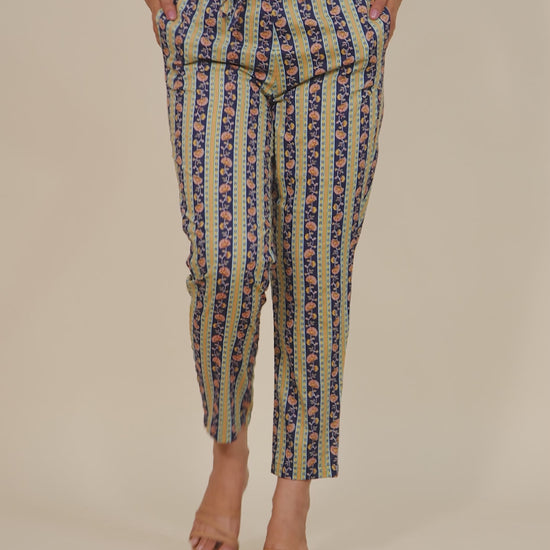 Soft Cotton Floral Indigo blue Tapered Trousers
