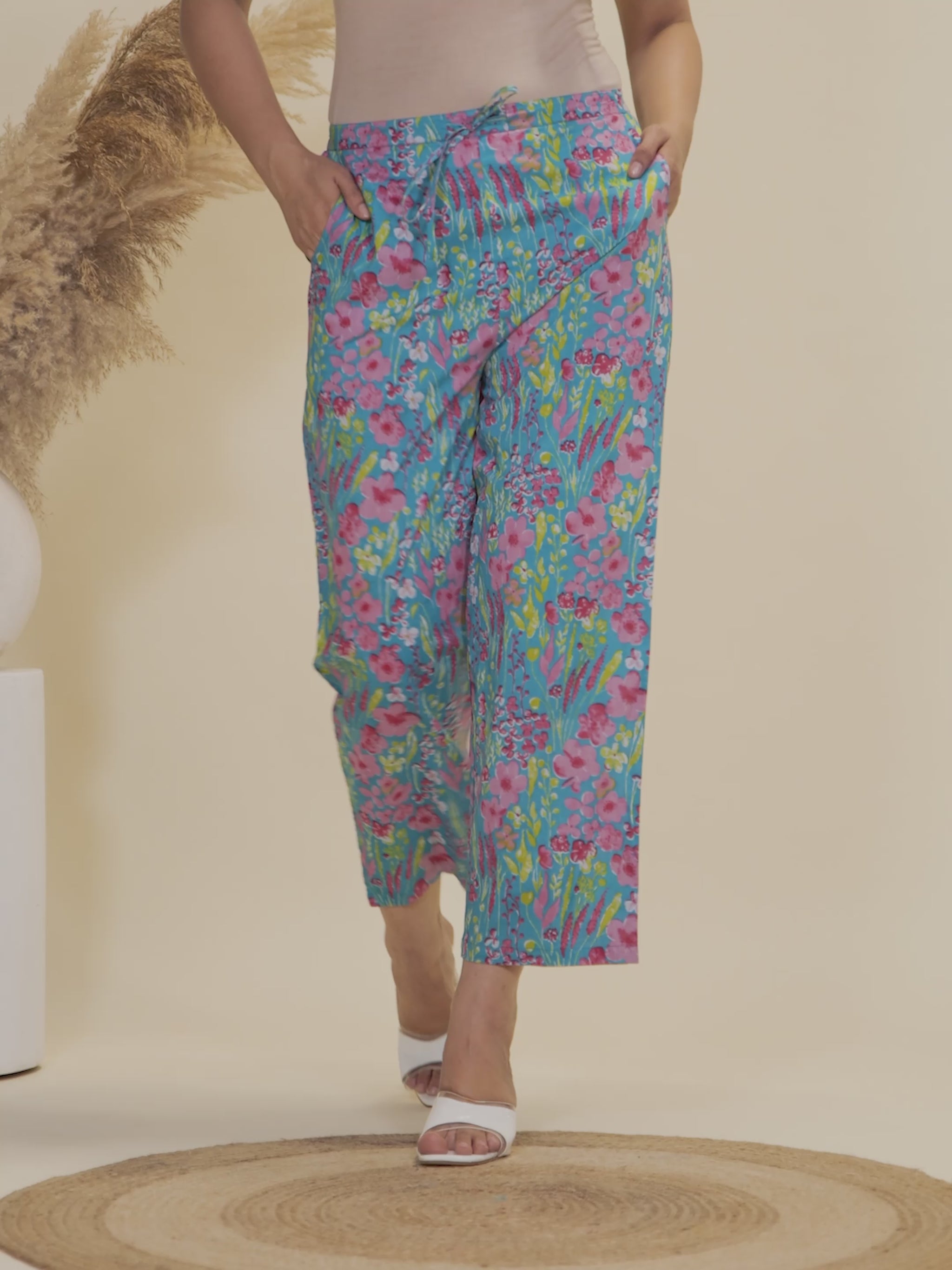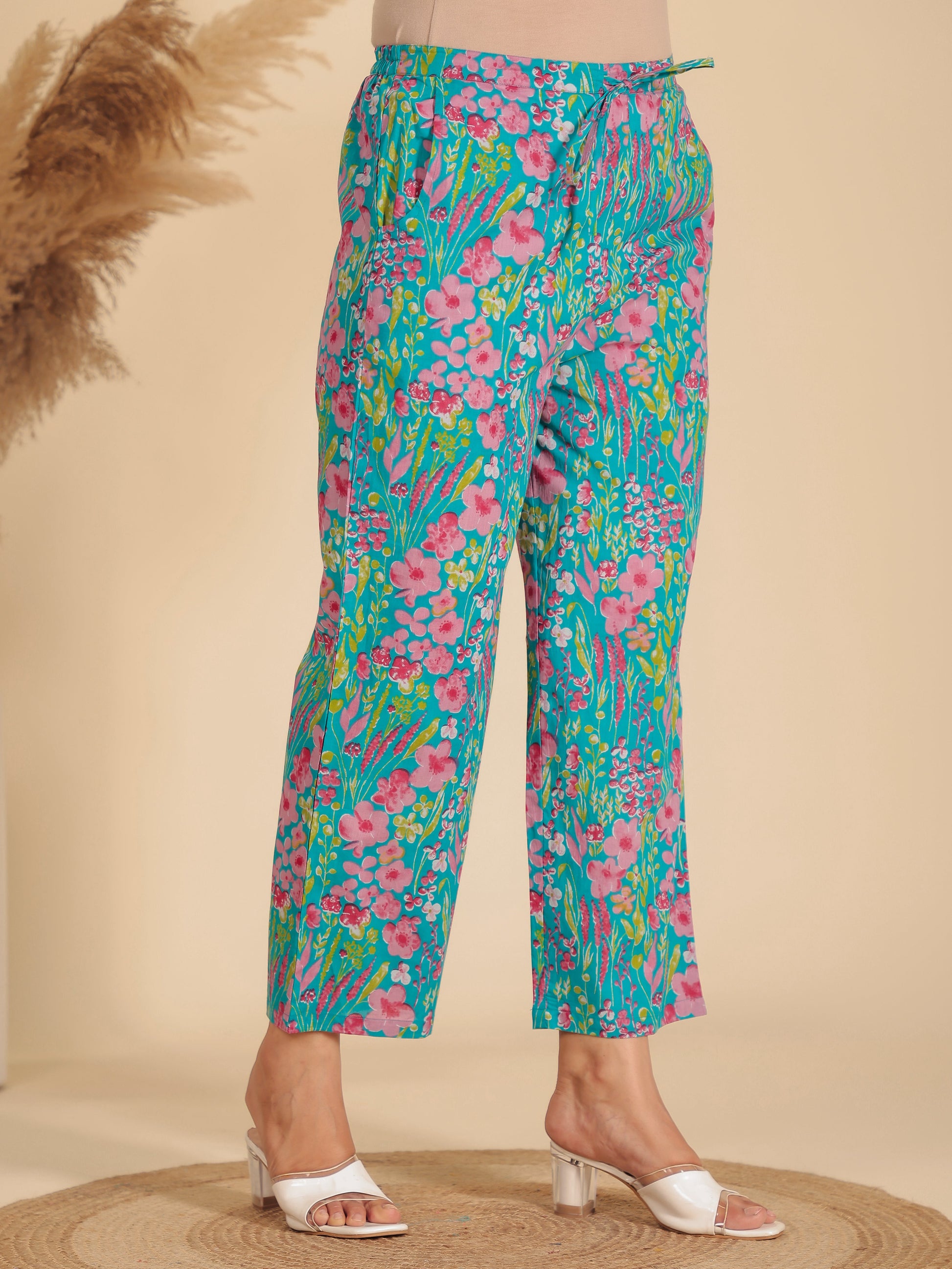 Upgrade your wardrobe with these Blue bottoms made from lightweight Soft Cotton. The Floral accents bring subtle charm, while pockets make them practical for all-day wear. Perfect for pairing with ethnic kurtas or western blouses, these bottoms are a go-to choice for comfort and style. Easy care ensures they stay fresh season after season.