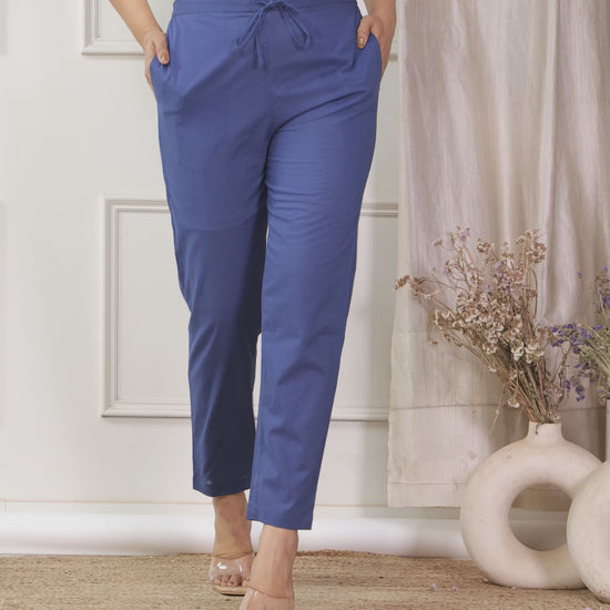 Soft Cotton Solid Indigo blue Tapered Trousers