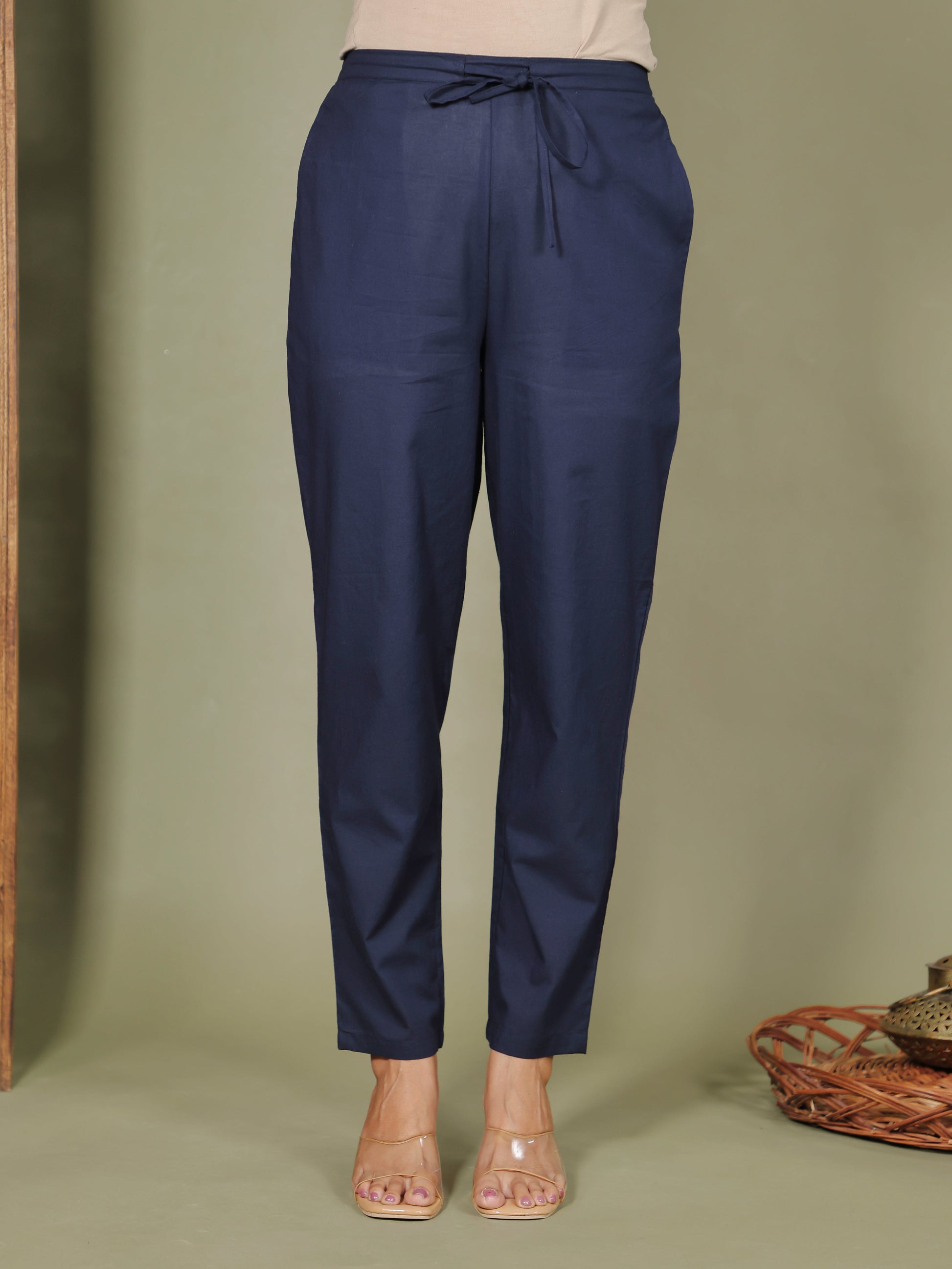 Upgrade your wardrobe with these Blue bottoms made from lightweight Soft Cotton. The Solid accents bring subtle charm, while pockets make them practical for all-day wear. Perfect for pairing with ethnic kurtas or western blouses, these bottoms are a go-to choice for comfort and style. Easy care ensures they stay fresh season after season.