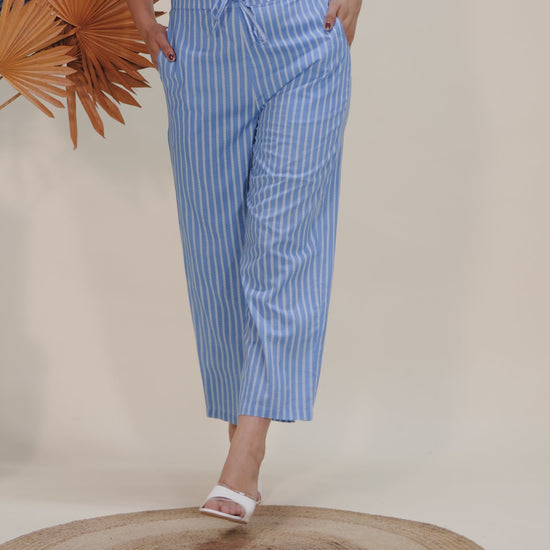 Crafted from Soft Cotton, these Blue bottoms are designed for all-day comfort. The chic Striped work adds flair, and pockets provide convenience for carrying essentials. Great for casual days, shopping trips, or work, these bottoms pair effortlessly with your favourite tops. Their durable design and easy maintenance make them a practical staple.