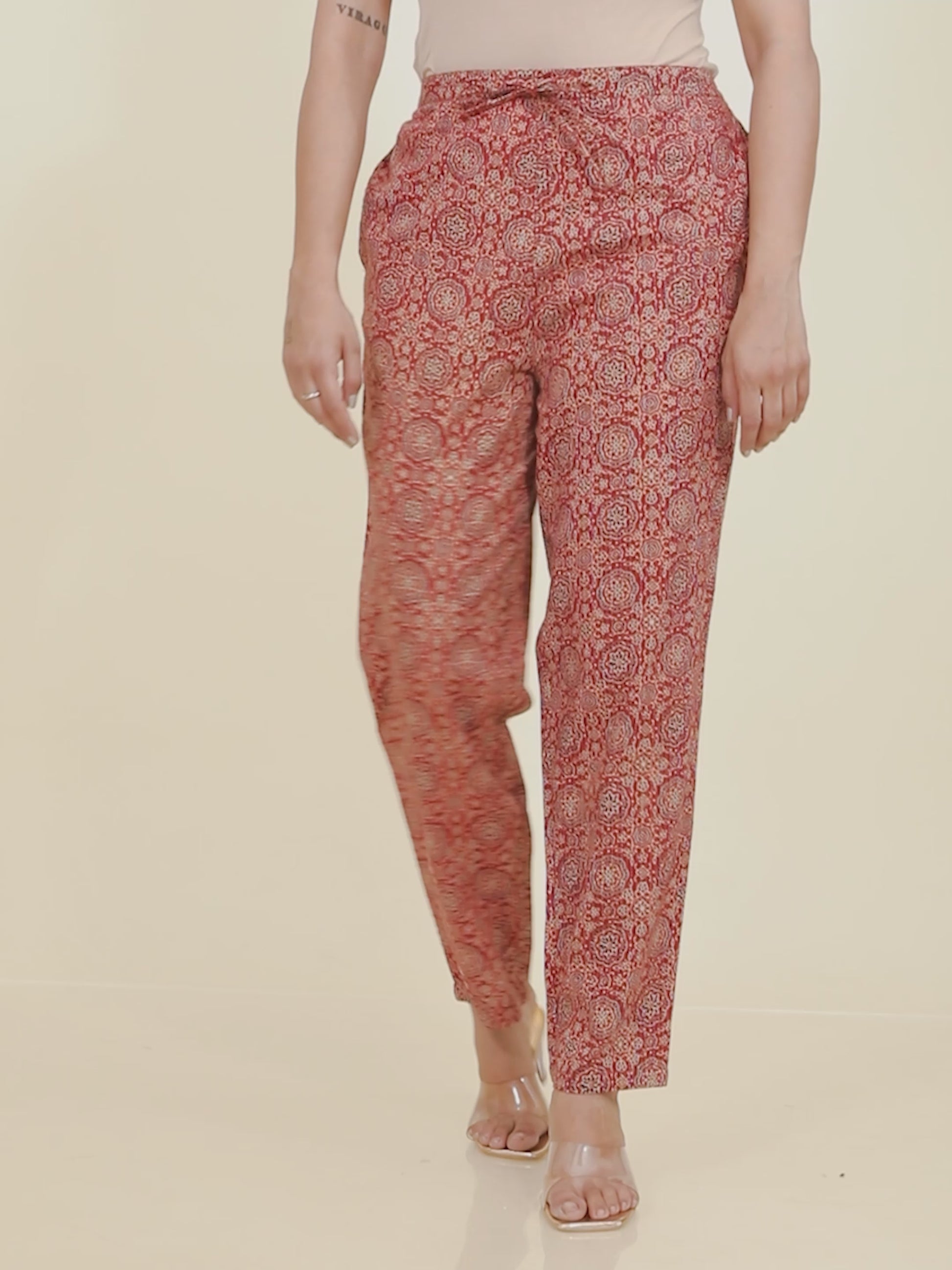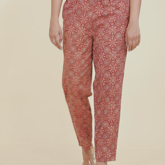 Kantha Cotton Ajrakh Rust Tapered Trousers