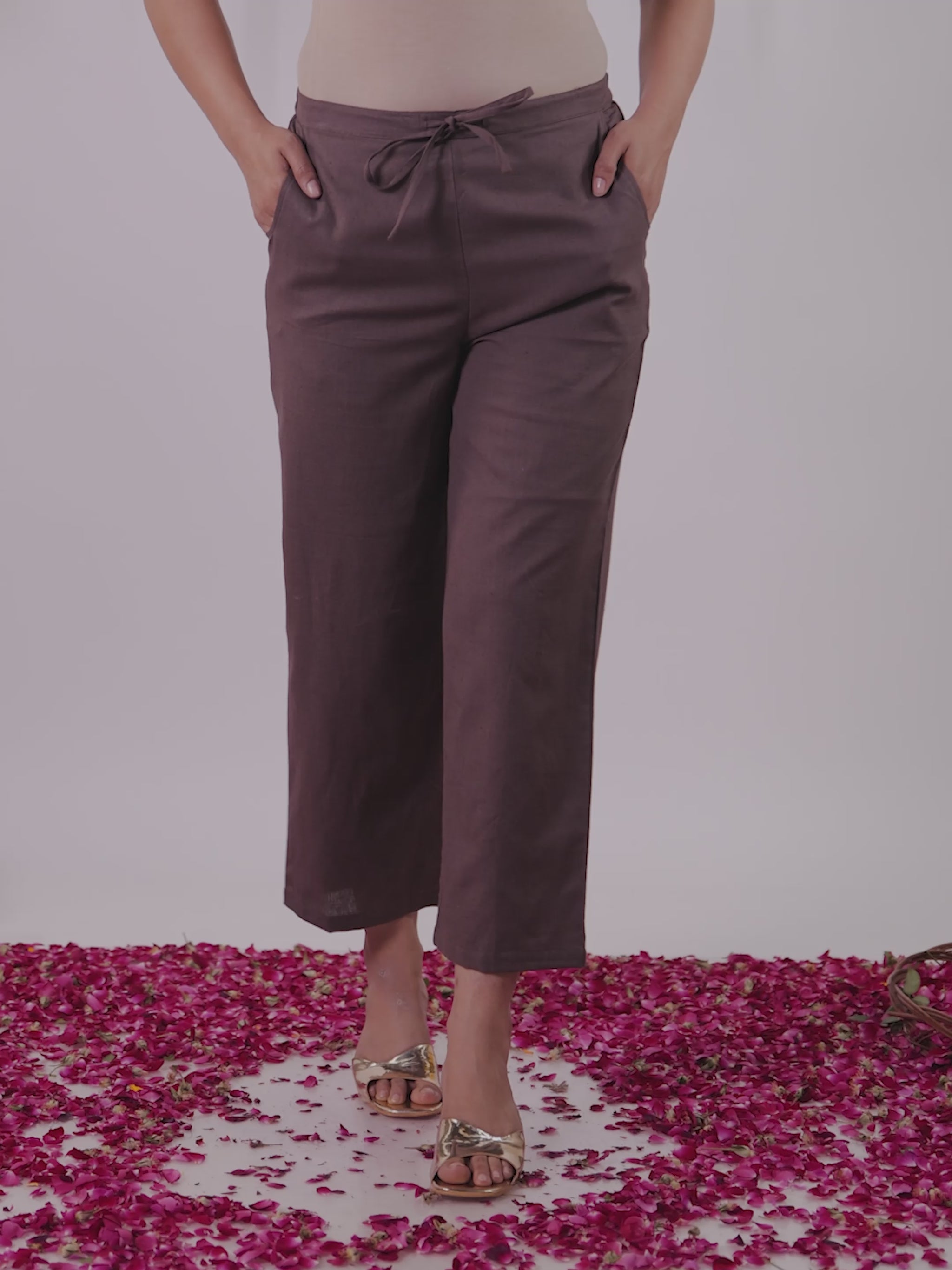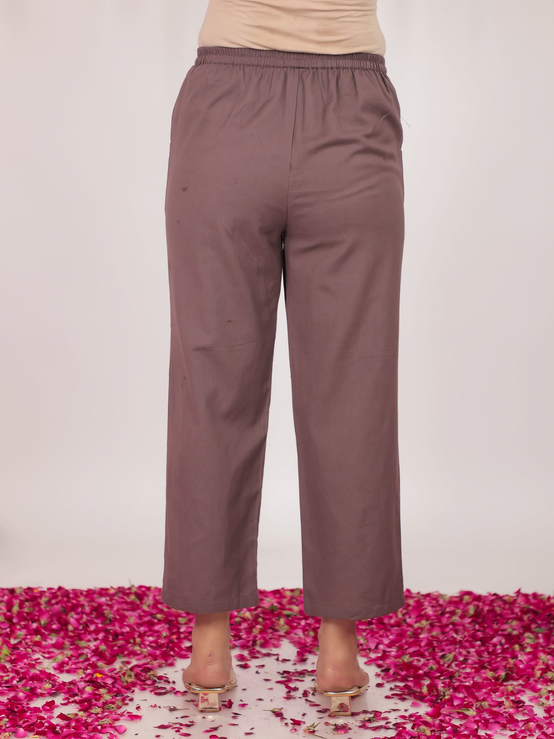 These Brown trouser crafted from breathable Natural Cotton combine comfort and style. The Solid pattern adds a modern twist, while pockets make them practical for daily wear. Ideal for casual outings or workdays, they pair effortlessly with kurtas, tops, or tunics. Keep them looking fresh with minimal care and enjoy their all-day ease.