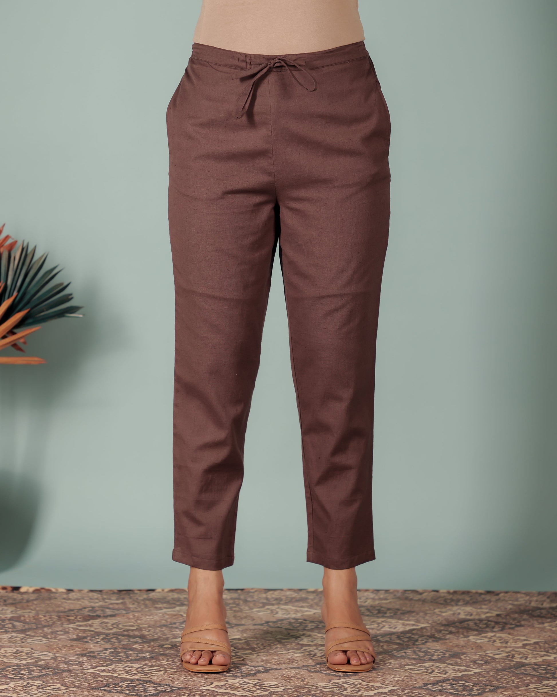 Designed for both comfort and versatility, these Linen Cotton Brown bottoms feature a stylish Solid design and pockets for added functionality. Perfect for office looks or weekend errands, they offer a flattering fit that works with a variety of tops. Pair with minimal accessories for a polished finish and enjoy effortless care.