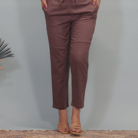 Linen Cotton Solid Brown Tapered Trousers