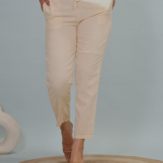 Crafted from Kantha Cotton, these Cream bottoms are designed for all-day comfort. The chic Solid work adds flair, and pockets provide convenience for carrying essentials. Great for casual days, shopping trips, or work, these bottoms pair effortlessly with your favourite tops. Their durable design and easy maintenance make them a practical staple.