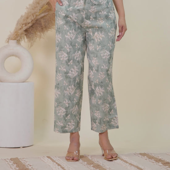Kantha Cotton Floral Green Straight Trousers