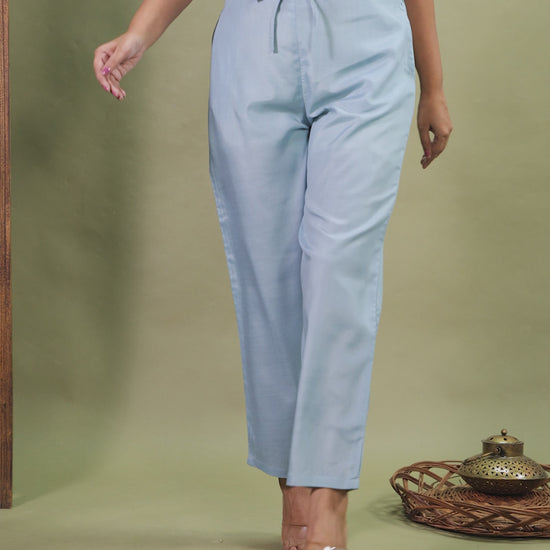 These Green trouser crafted from breathable Chanderi combine comfort and style. The Solid pattern adds a modern twist, while pockets make them practical for daily wear. Ideal for casual outings or workdays, they pair effortlessly with kurtas, tops, or tunics. Keep them looking fresh with minimal care and enjoy their all-day ease.