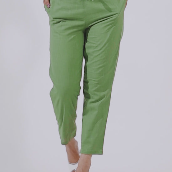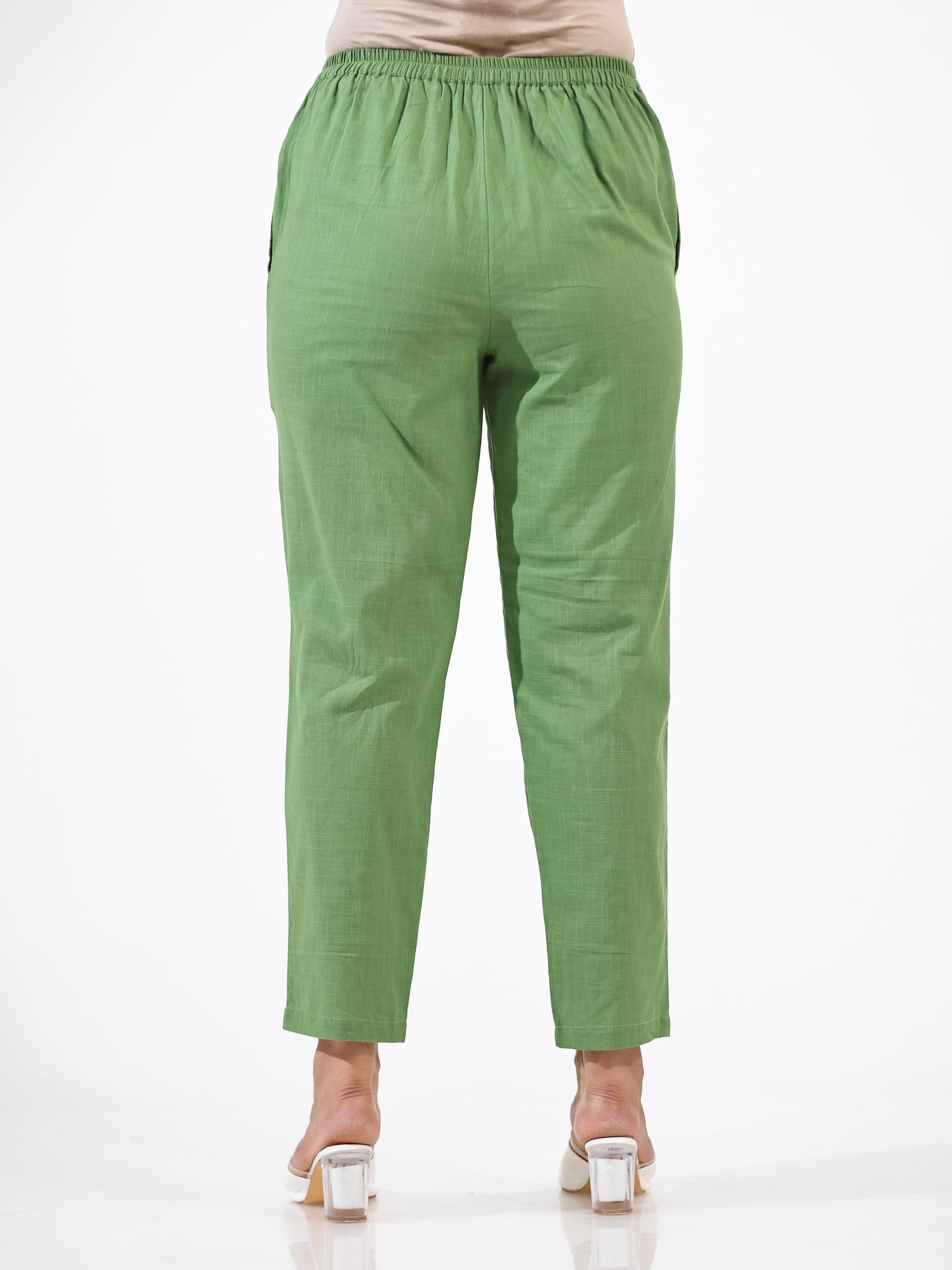 Crafted from Natural Cotton, these Green bottoms are designed for all-day comfort. The chic Solid work adds flair, and pockets provide convenience for carrying essentials. Great for casual days, shopping trips, or work, these bottoms pair effortlessly with your favourite tops. Their durable design and easy maintenance make them a practical staple.