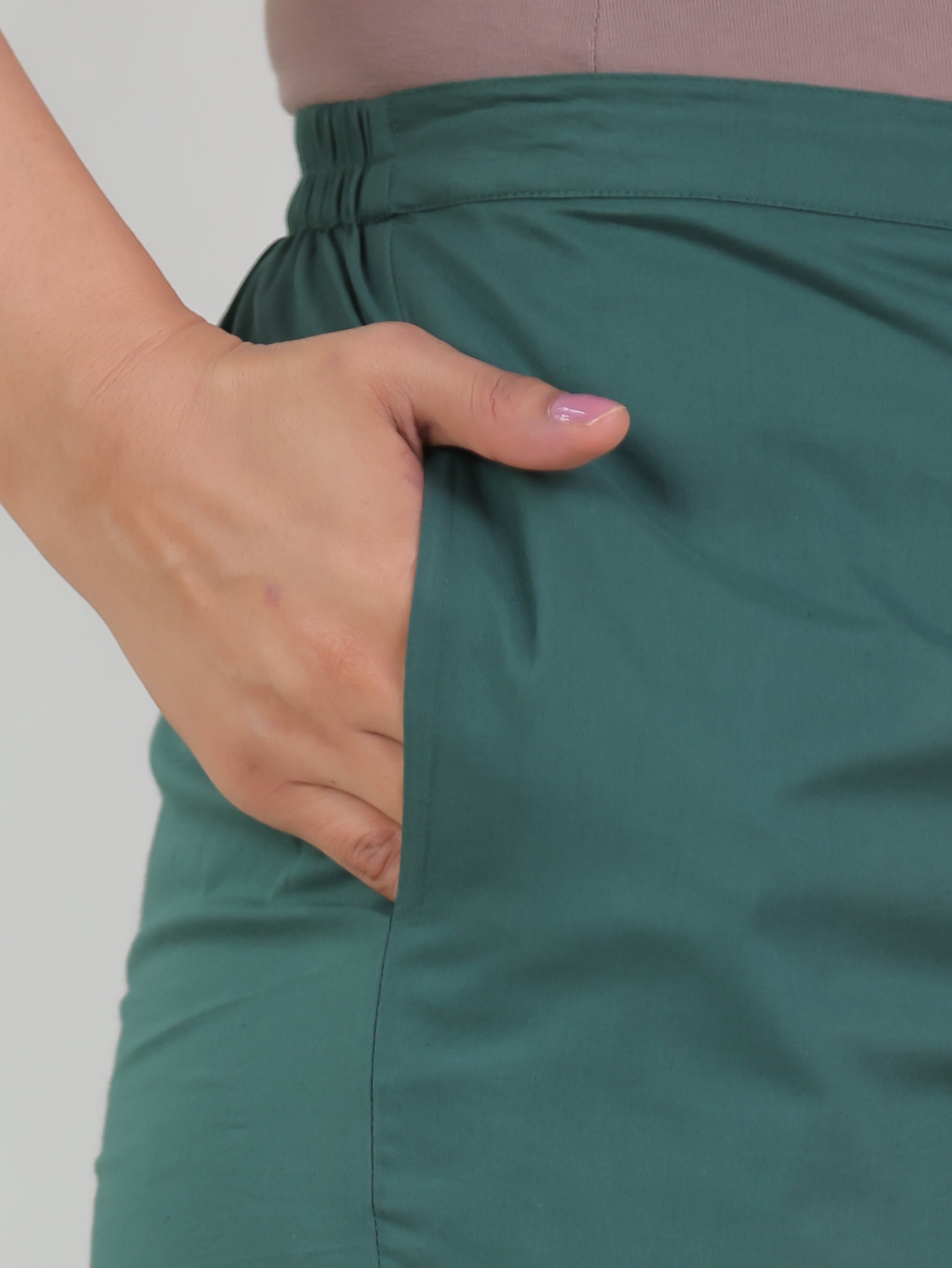 Crafted from Soft Cotton, these Green bottoms are designed for all-day comfort. The chic Solid work adds flair, and pockets provide convenience for carrying essentials. Great for casual days, shopping trips, or work, these bottoms pair effortlessly with your favourite tops. Their durable design and easy maintenance make them a practical staple.