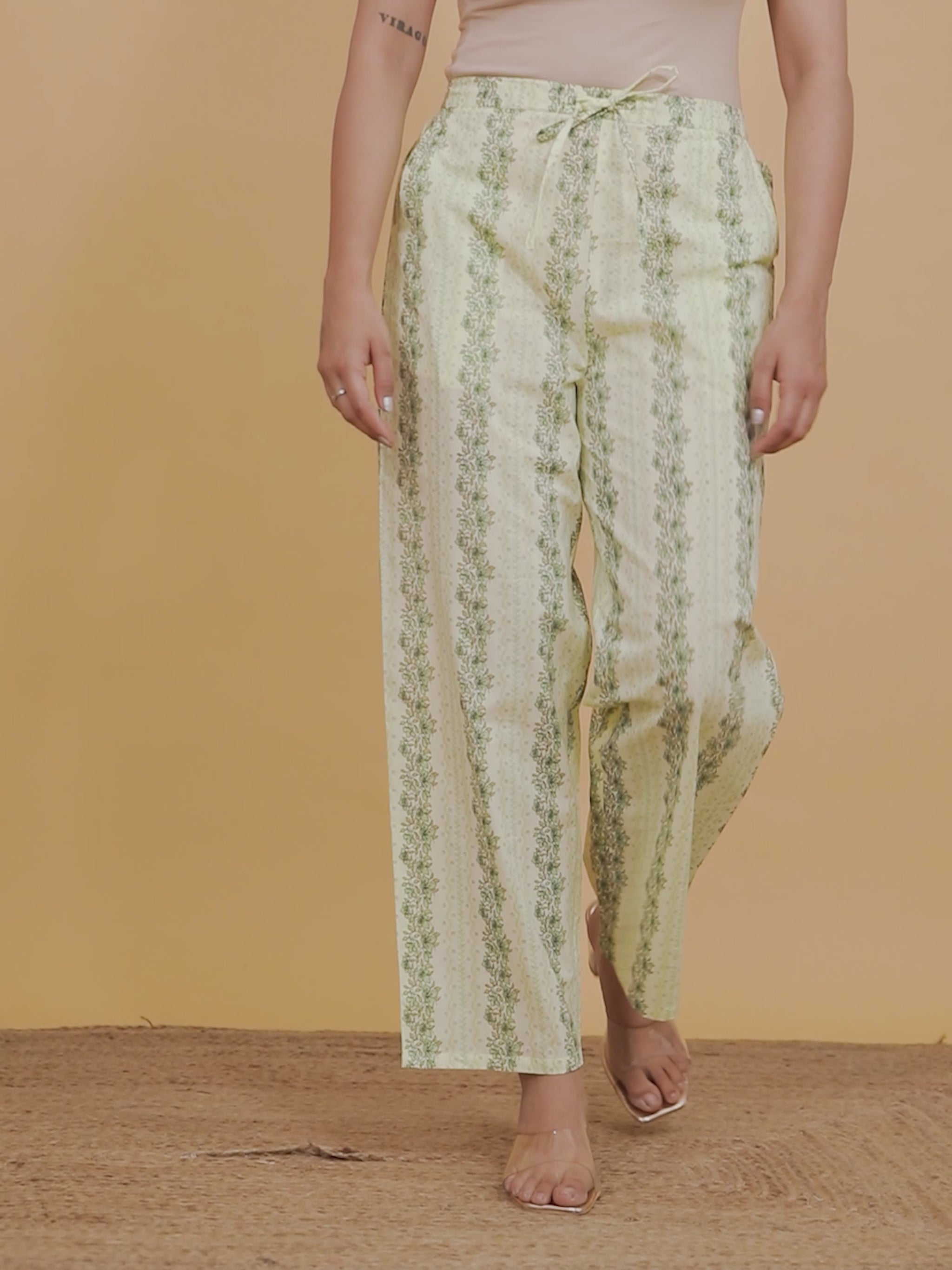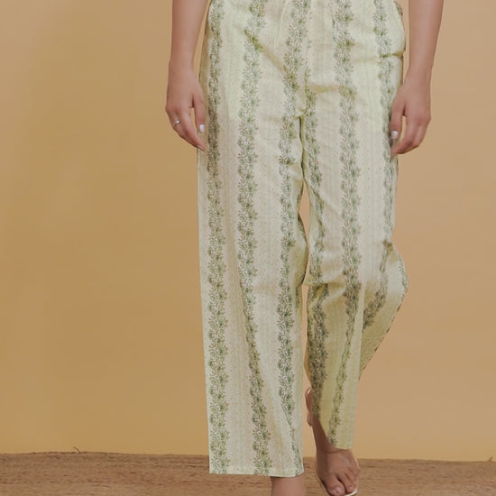 Upgrade your wardrobe with these Green bottoms made from lightweight Soft Cotton. The Striped accents bring subtle charm, while pockets make them practical for all-day wear. Perfect for pairing with ethnic kurtas or western blouses, these bottoms are a go-to choice for comfort and style. Easy care ensures they stay fresh season after season.
