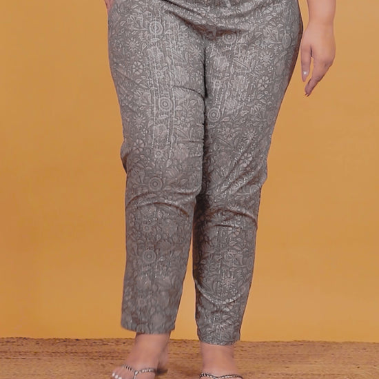 Lurex Cotton Floral Grey Tapered Trousers