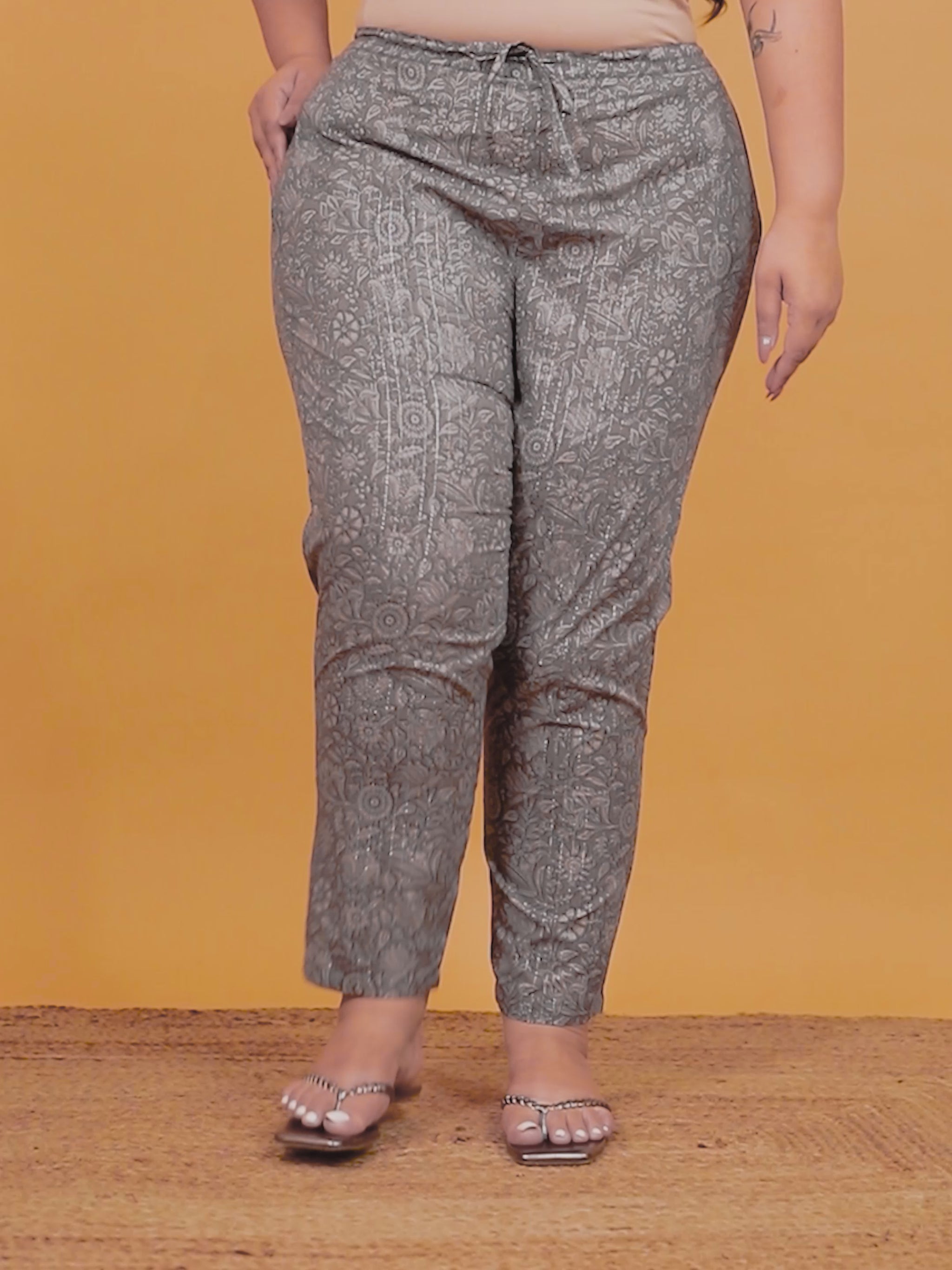 Upgrade your wardrobe with these Grey bottoms made from lightweight Lurex Cotton. The Floral accents bring subtle charm, while pockets make them practical for all-day wear. Perfect for pairing with ethnic kurtas or western blouses, these bottoms are a go-to choice for comfort and style. Easy care ensures they stay fresh season after season.