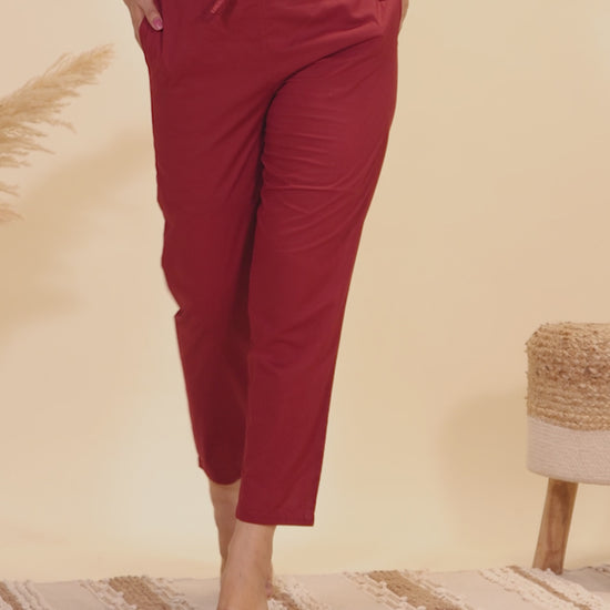 Crafted from Soft Cotton, these Maroon bottoms are designed for all-day comfort. The chic Solid work adds flair, and pockets provide convenience for carrying essentials. Great for casual days, shopping trips, or work, these bottoms pair effortlessly with your favourite tops. Their durable design and easy maintenance make them a practical staple.