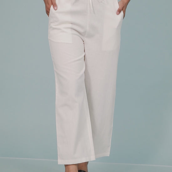 Meet your new wardrobe favourite – these comfortable off-white linen cotton pants that go with everything. These essential pants feature a flattering cut that works for any body type. Featuring an accommodating partially elastic waist that provides custom comfort without pressure points. Features two convenient pockets that combine functionality with style. Easy to maintain with machine wash instructions, these bottoms will become a wardrobe staple.