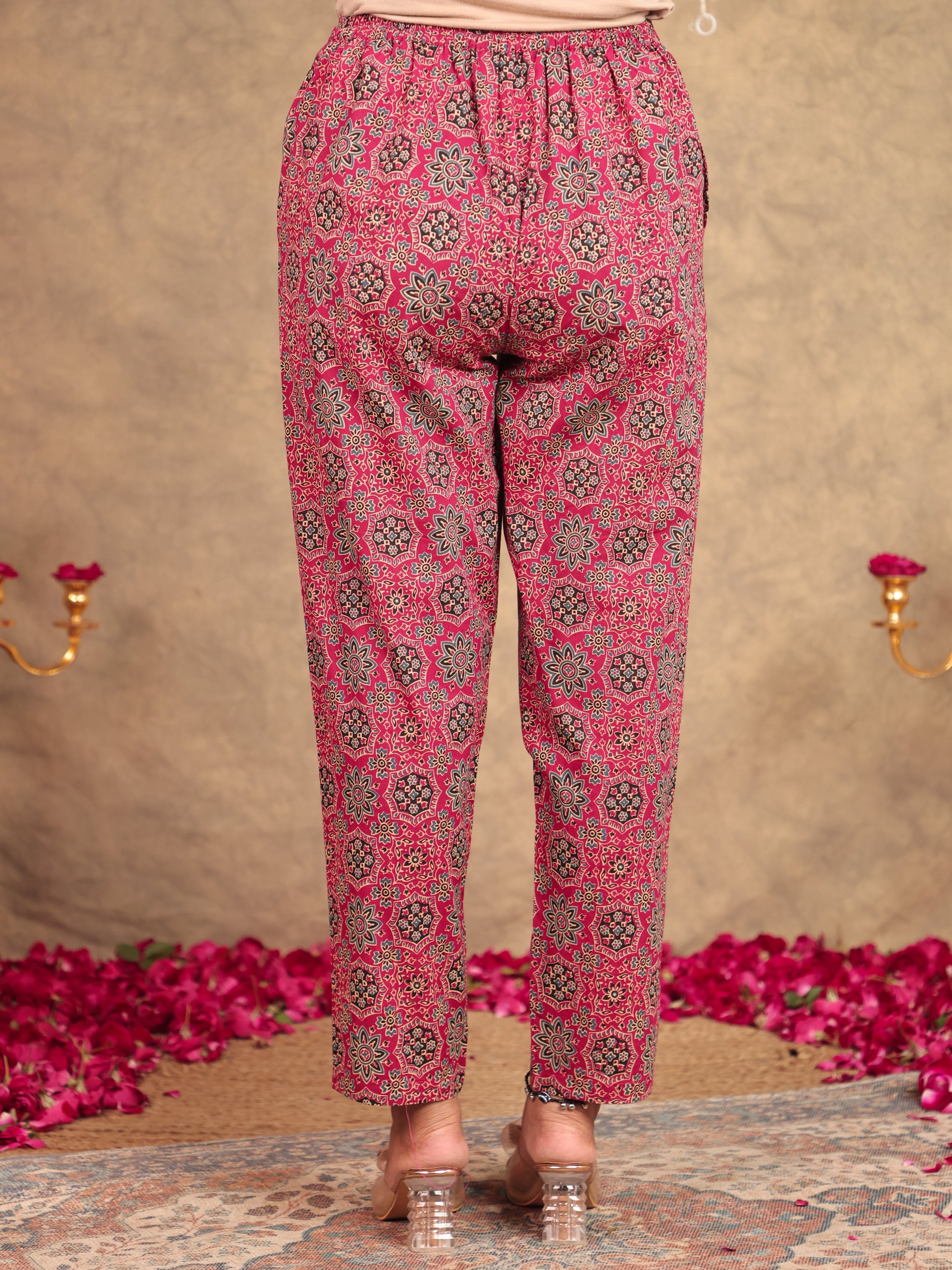Crafted from Soft Cotton, these Pink bottoms are designed for all-day comfort. The chic Geometric work adds flair, and pockets provide convenience for carrying essentials. Great for casual days, shopping trips, or work, these bottoms pair effortlessly with your favourite tops. Their durable design and easy maintenance make them a practical staple.