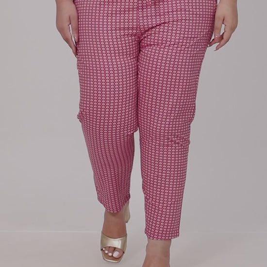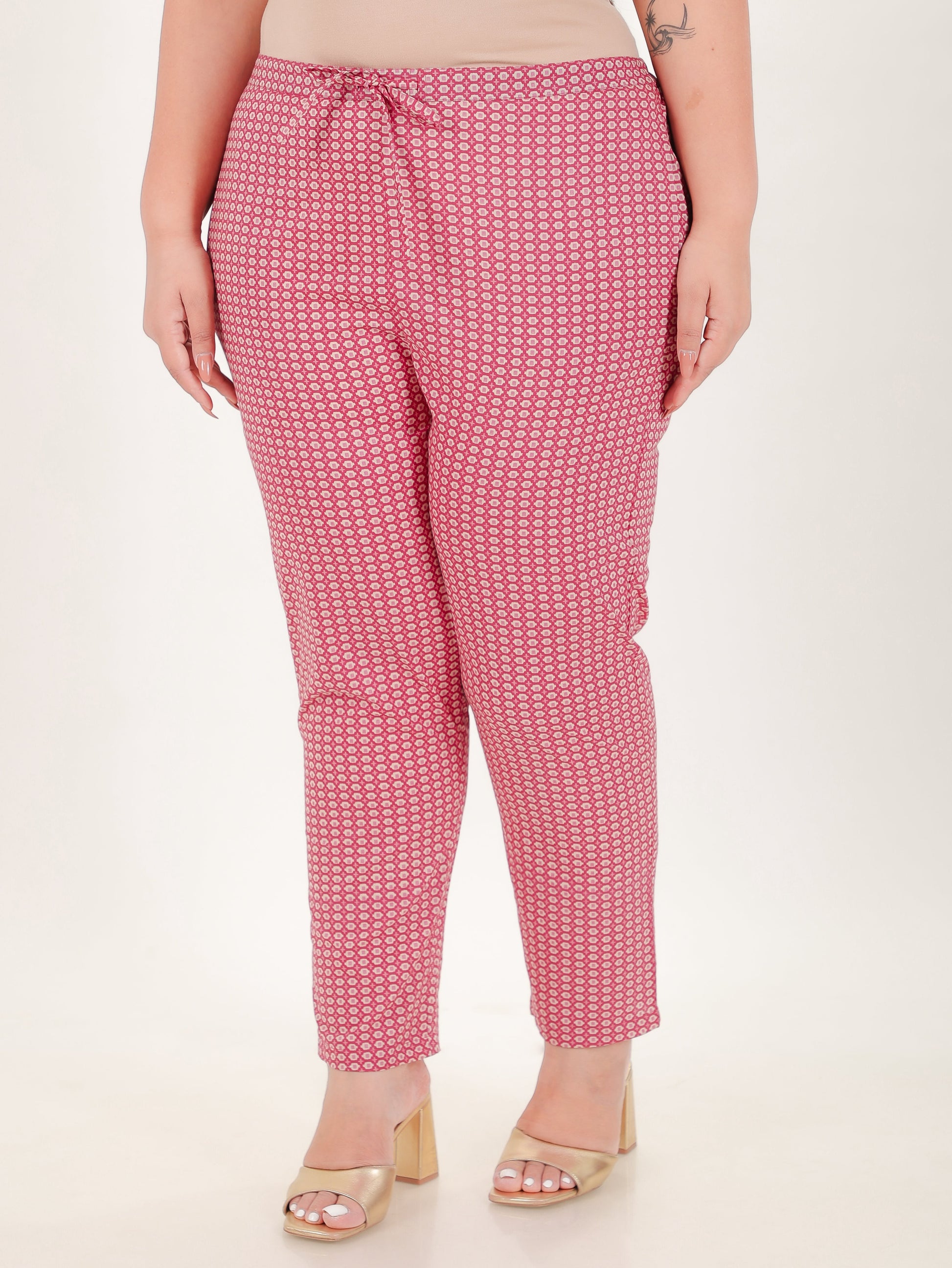These Pink trouser crafted from breathable Soft Cotton combine comfort and style. The Geometric pattern adds a modern twist, while pockets make them practical for daily wear. Ideal for casual outings or workdays, they pair effortlessly with kurtas, tops, or tunics. Keep them looking fresh with minimal care and enjoy their all-day ease.