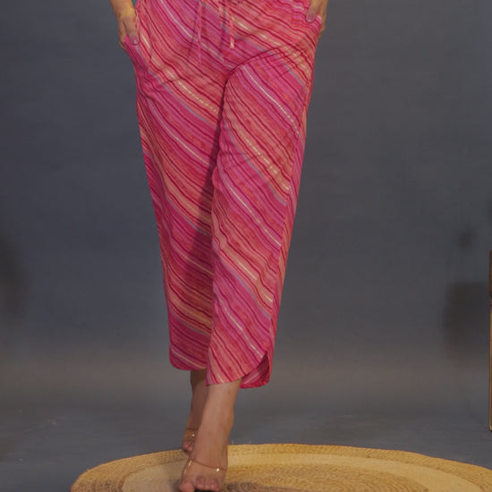 Designed for both comfort and versatility, these Soft Cotton Pink bottoms feature a stylish Leheriya design and pockets for added functionality. Perfect for office looks or weekend errands, they offer a flattering fit that works with a variety of tops. Pair with minimal accessories for a polished finish and enjoy effortless care.