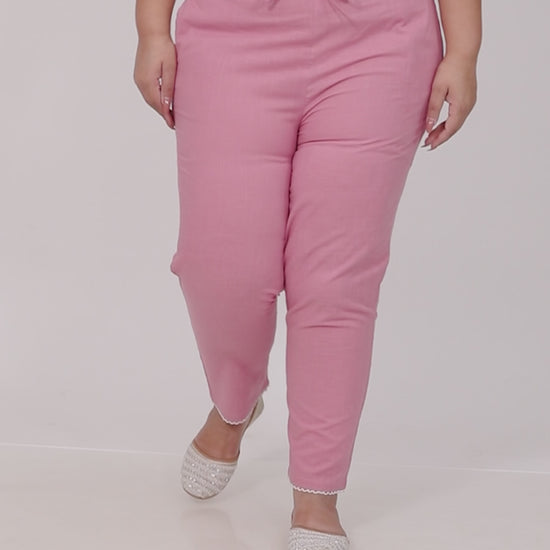Natural Cotton Solid Pink Tapered Trousers