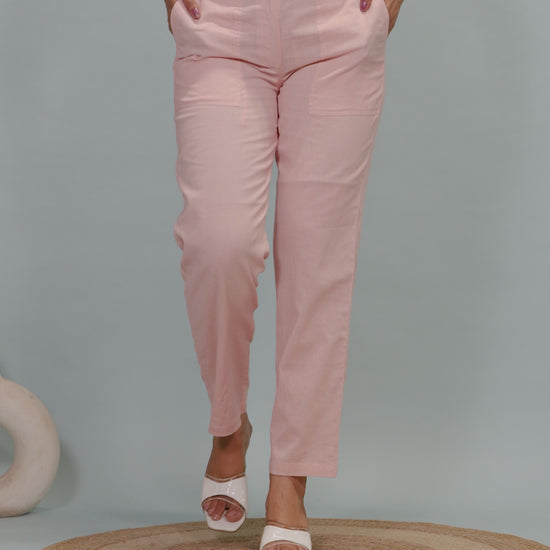 Linen Cotton Solid Pink Tapered Trousers