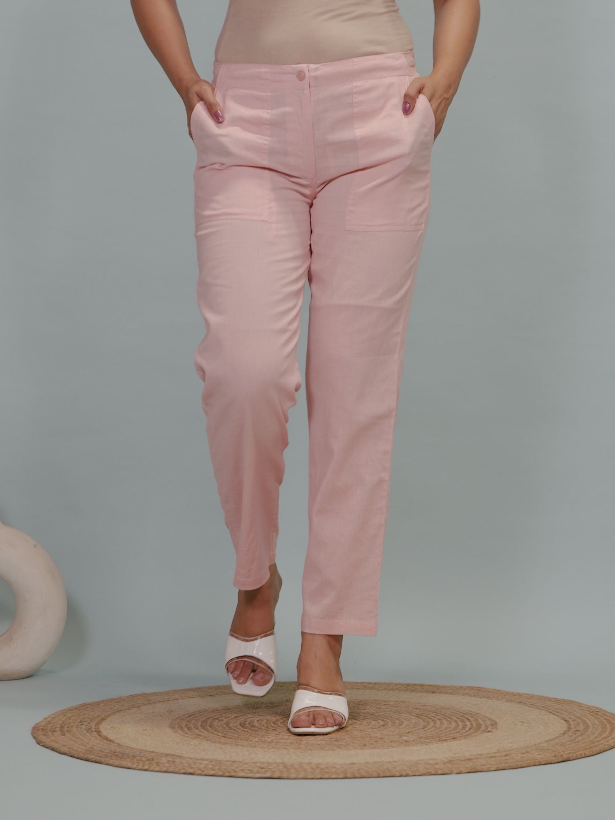 Upgrade your wardrobe with these Peach bottoms made from lightweight Linen Cotton. The Solid accents bring subtle charm, while pockets make them practical for all-day wear. Perfect for pairing with ethnic kurtas or western blouses, these bottoms are a go-to choice for comfort and style. Easy care ensures they stay fresh season after season.