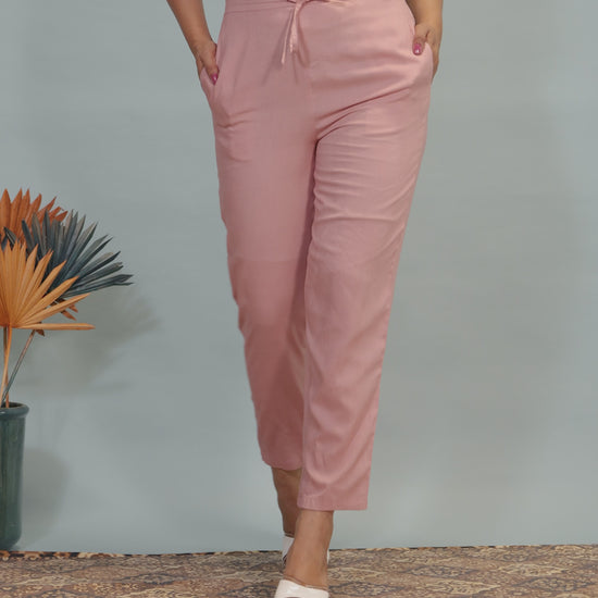 Soft Cotton Solid Pink Tapered Trousers
