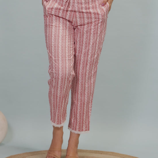 Soft Cotton Striped Pink Tapered Trousers