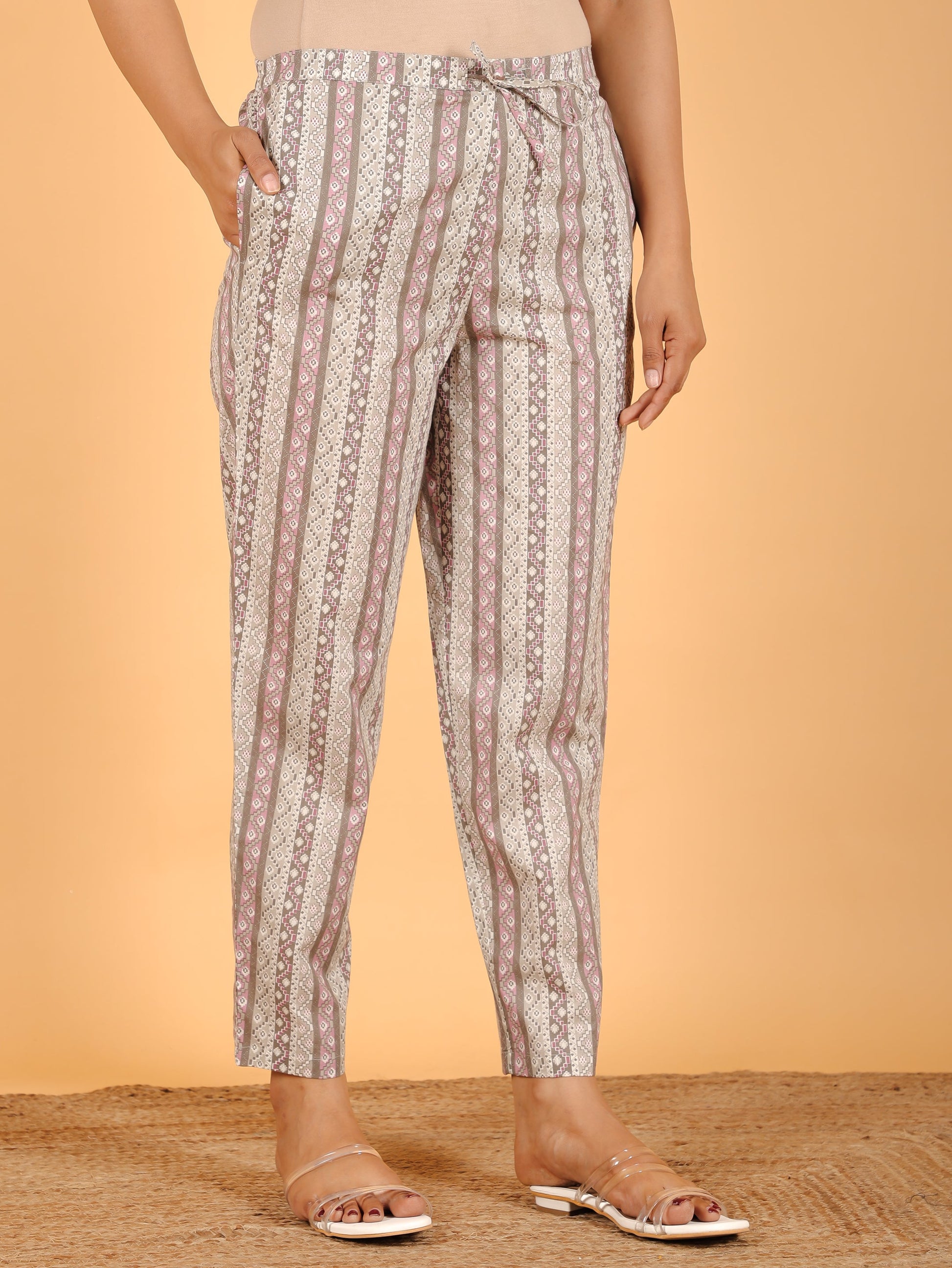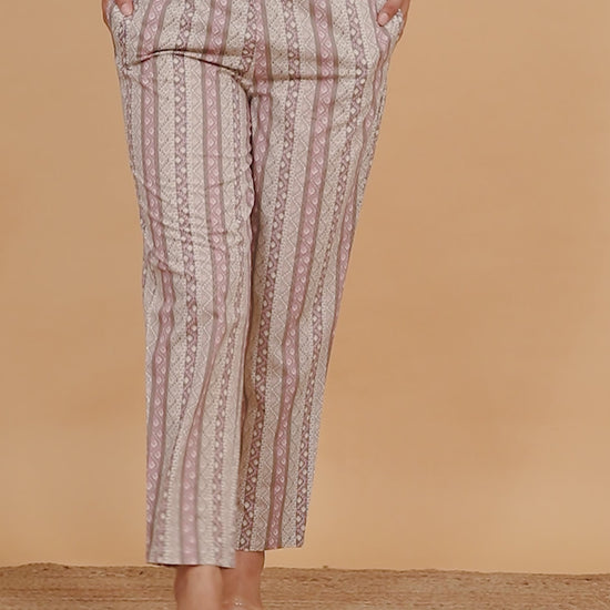These Pink trouser crafted from breathable Soft Cotton combine comfort and style. The Striped pattern adds a modern twist, while pockets make them practical for daily wear. Ideal for casual outings or workdays, they pair effortlessly with kurtas, tops, or tunics. Keep them looking fresh with minimal care and enjoy their all-day ease.