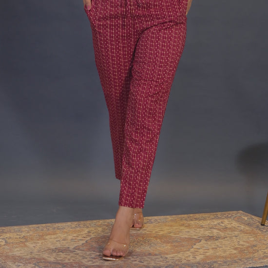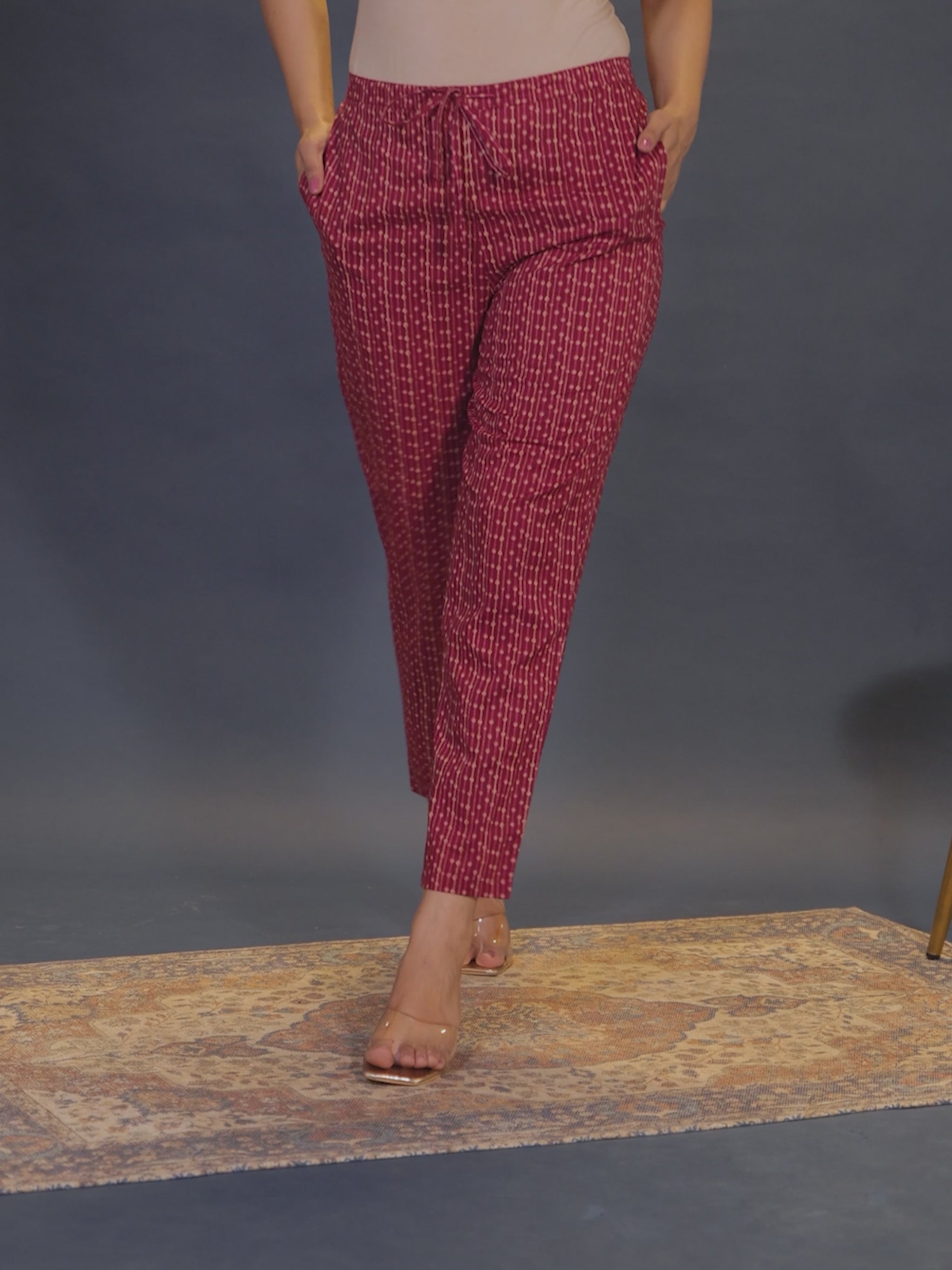 Upgrade your wardrobe with these Pink bottoms made from lightweight Soft Cotton. The Striped accents bring subtle charm, while pockets make them practical for all-day wear. Perfect for pairing with ethnic kurtas or western blouses, these bottoms are a go-to choice for comfort and style. Easy care ensures they stay fresh season after season.