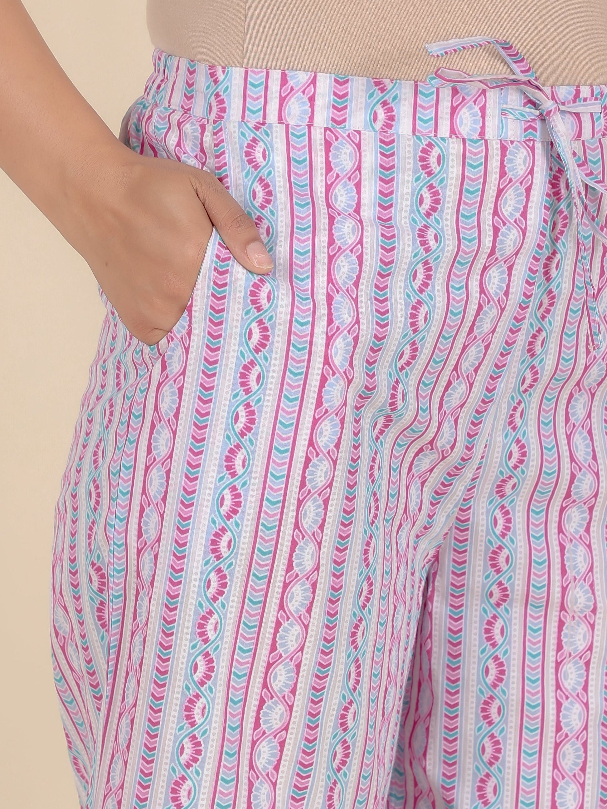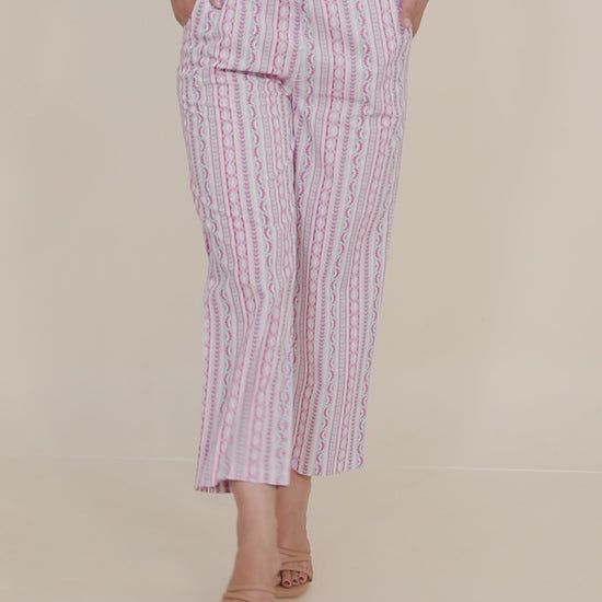 These Pink trouser crafted from breathable Soft Cotton combine comfort and style. The Striped pattern adds a modern twist, while pockets make them practical for daily wear. Ideal for casual outings or workdays, they pair effortlessly with kurtas, tops, or tunics. Keep them looking fresh with minimal care and enjoy their all-day ease.