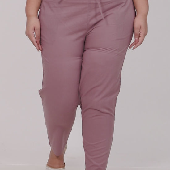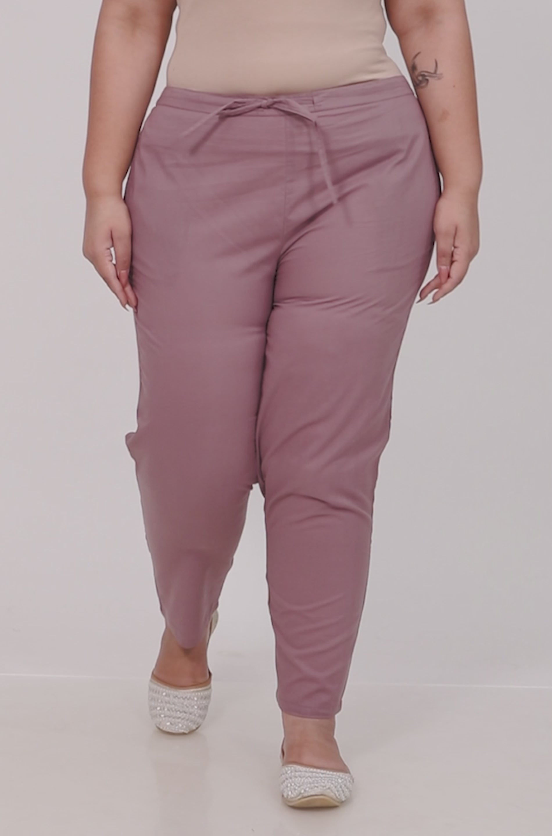 Soft Cotton Solid Burnt Pink Tapered Trousers