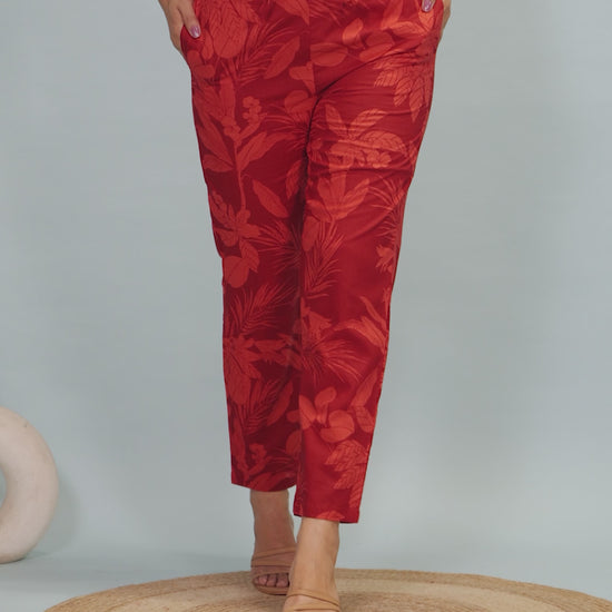 Designed for both comfort and versatility, these Soft Cotton Red bottoms feature a stylish Foliage design and pockets for added functionality. Perfect for office looks or weekend errands, they offer a flattering fit that works with a variety of tops. Pair with minimal accessories for a polished finish and enjoy effortless care.