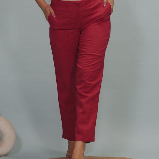 Designed for both comfort and versatility, these Natural Cotton Red bottoms feature a stylish Solid design and pockets for added functionality. Perfect for office looks or weekend errands, they offer a flattering fit that works with a variety of tops. Pair with minimal accessories for a polished finish and enjoy effortless care.