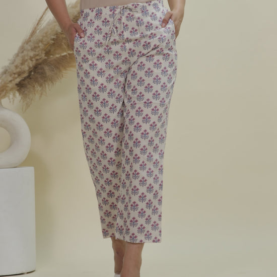 Soft Cotton Floral White Straight Trousers