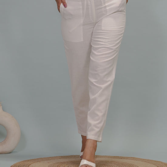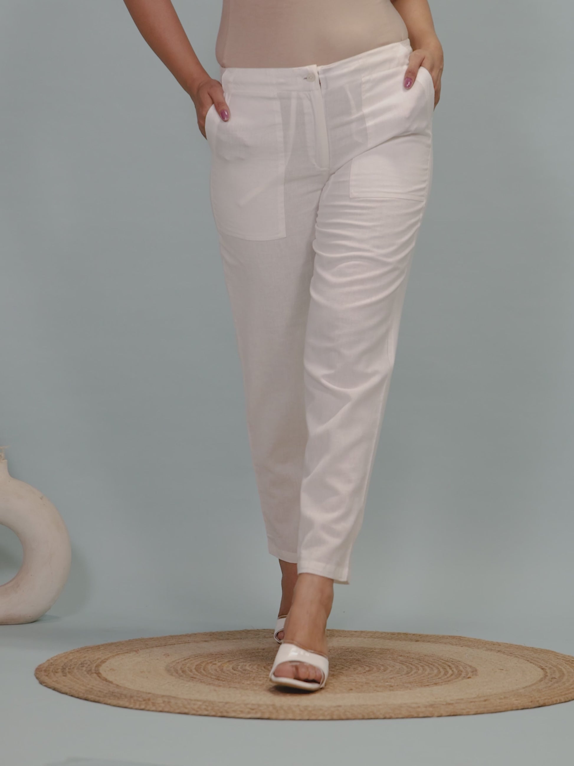 Designed for both comfort and versatility, these Linen Cotton White bottoms feature a stylish Solid design and pockets for added functionality. Perfect for office looks or weekend errands, they offer a flattering fit that works with a variety of tops. Pair with minimal accessories for a polished finish and enjoy effortless care.