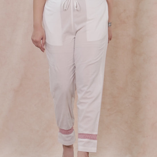 Soft Cotton Solid White Trousers Tapered Trousers