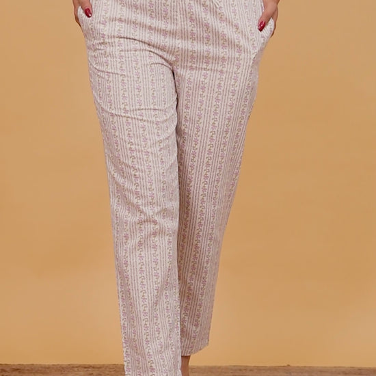 These White trouser crafted from breathable Soft Cotton combine comfort and style. The Striped pattern adds a modern twist, while pockets make them practical for daily wear. Ideal for casual outings or workdays, they pair effortlessly with kurtas, tops, or tunics. Keep them looking fresh with minimal care and enjoy their all-day ease.