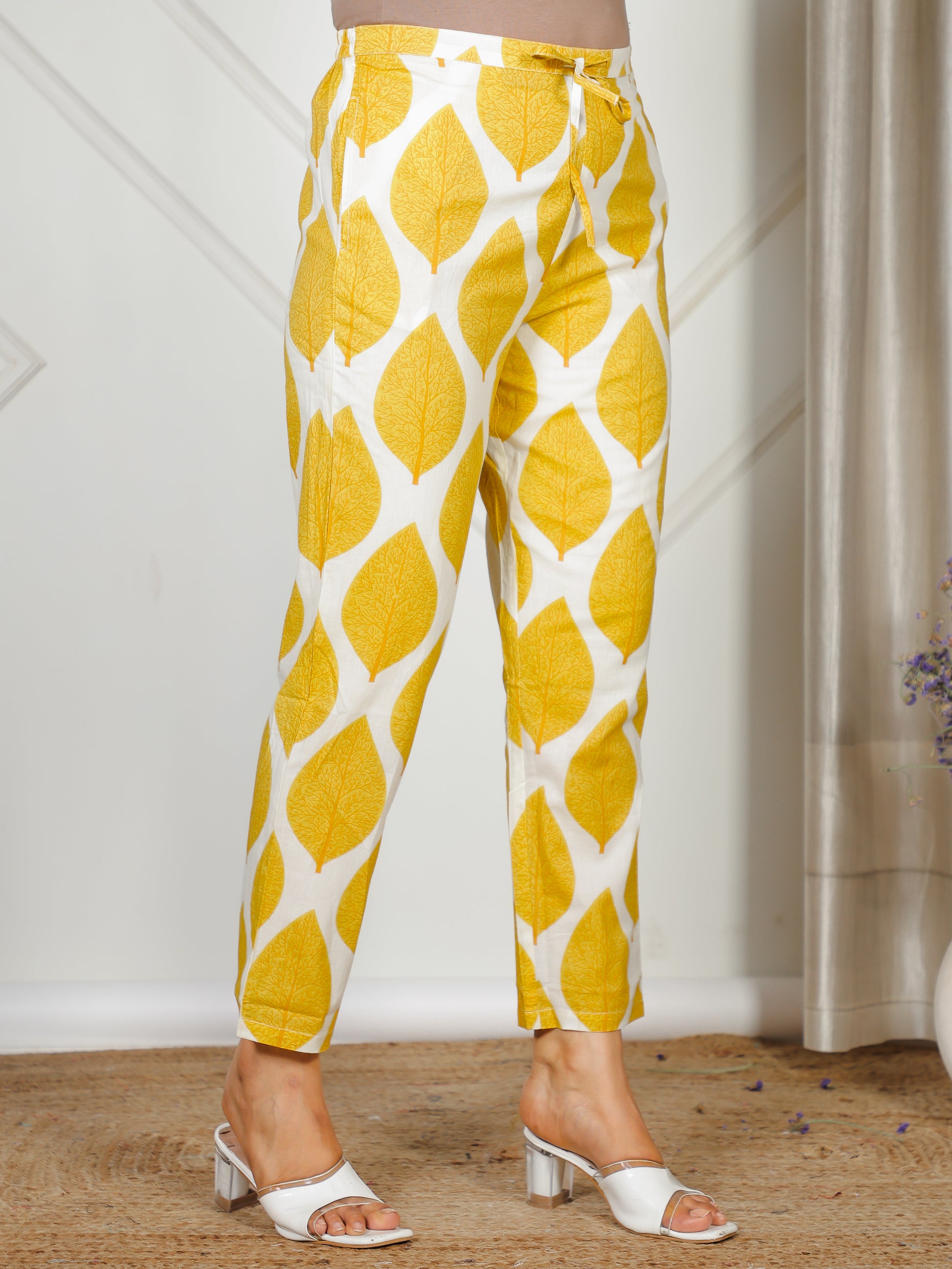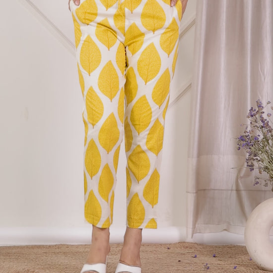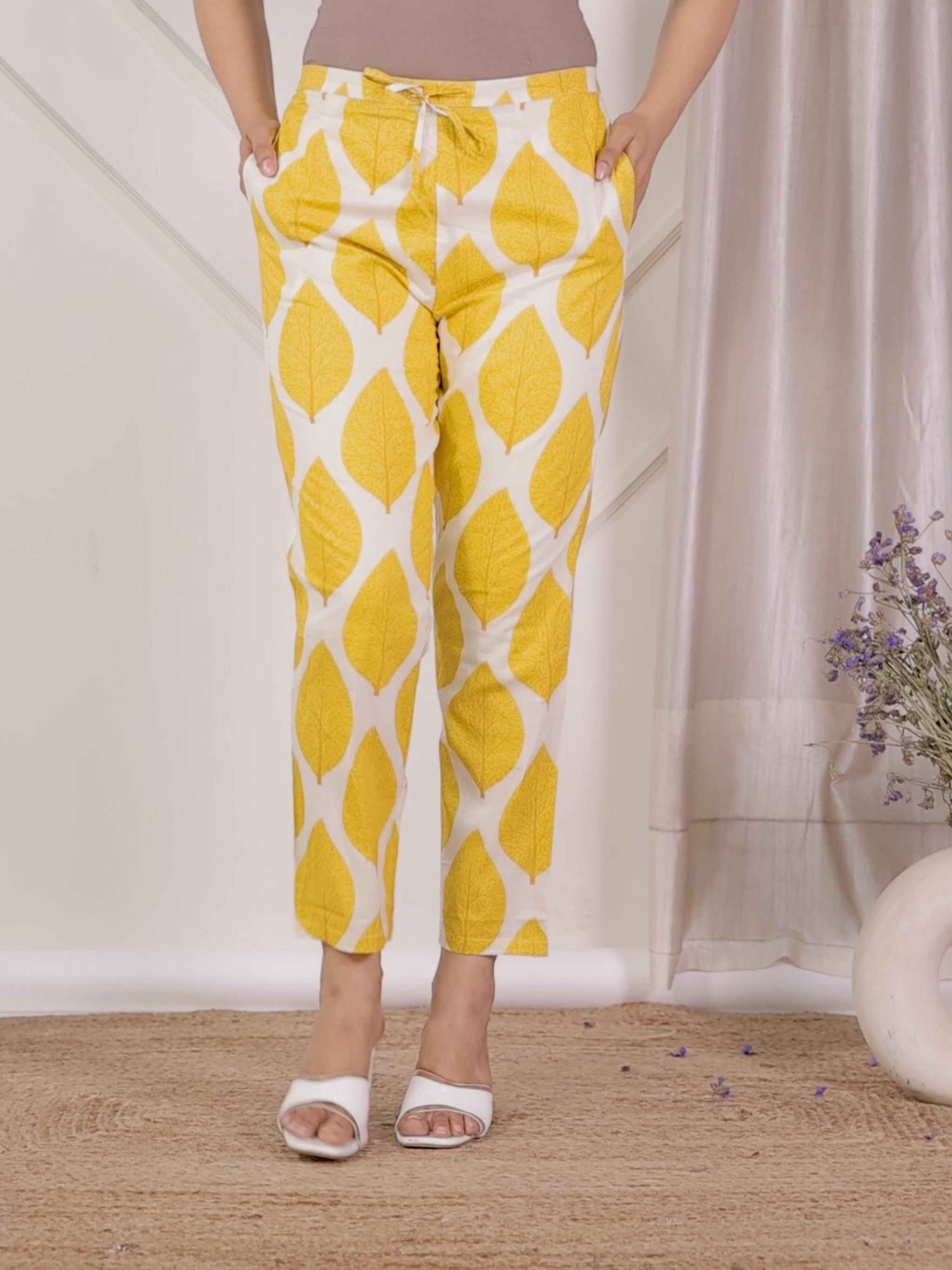 Designed for both comfort and versatility, these Soft Cotton Yellow bottoms feature a stylish Foliage design and pockets for added functionality. Perfect for office looks or weekend errands, they offer a flattering fit that works with a variety of tops. Pair with minimal accessories for a polished finish and enjoy effortless care.