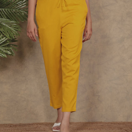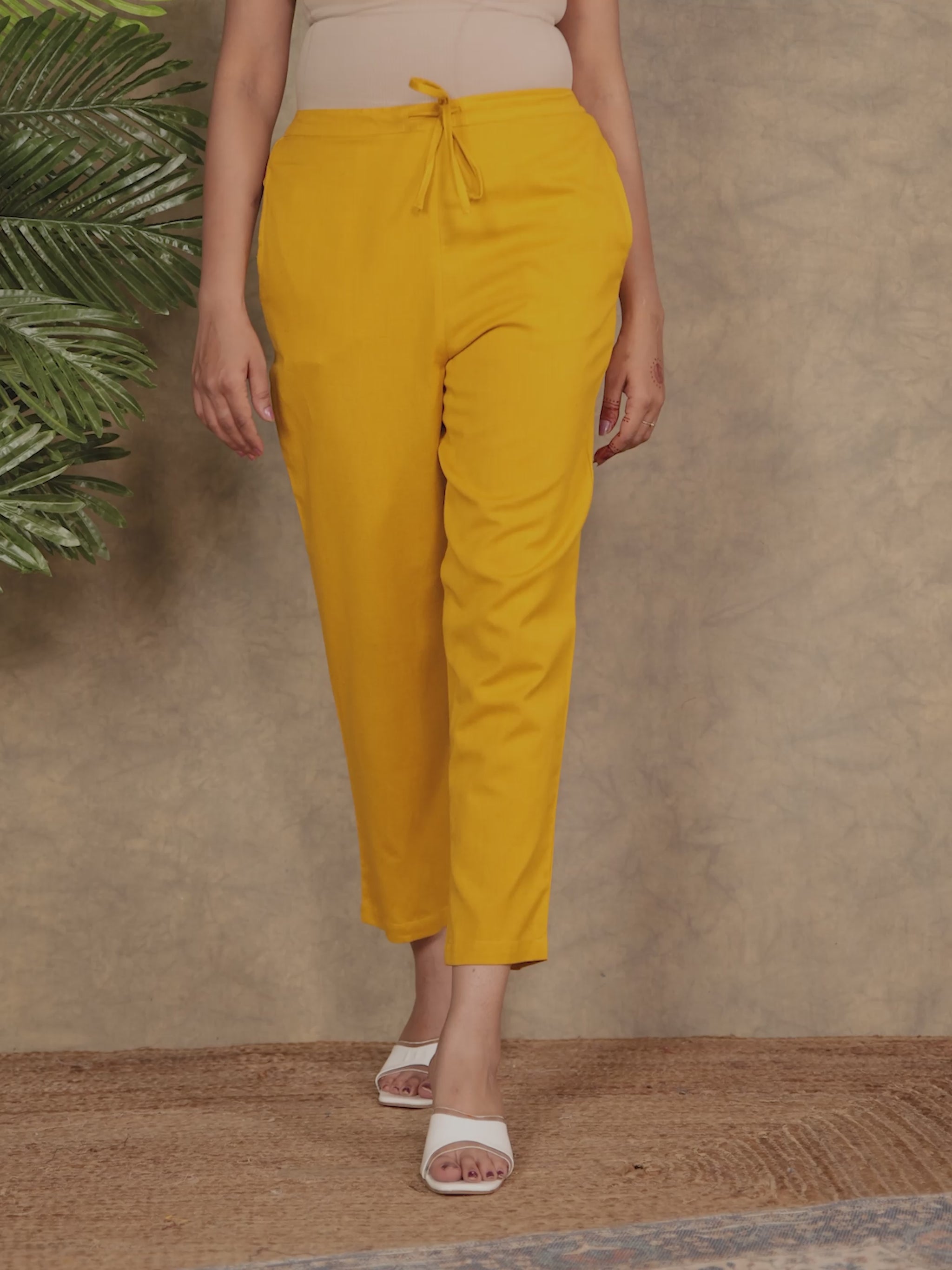 These Mustard trouser crafted from breathable Linen Cotton combine comfort and style. The Solid pattern adds a modern twist, while pockets make them practical for daily wear. Ideal for casual outings or workdays, they pair effortlessly with kurtas, tops, or tunics. Keep them looking fresh with minimal care and enjoy their all-day ease.