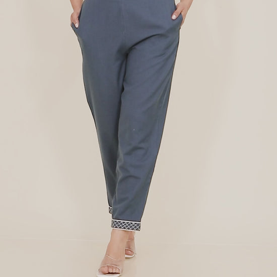 These Blue trouser crafted from breathable Linen Cotton combine comfort and style. The Solid pattern adds a modern twist, while pockets make them practical for daily wear. Ideal for casual outings or workdays, they pair effortlessly with kurtas, tops, or tunics. Keep them looking fresh with minimal care and enjoy their all-day ease.