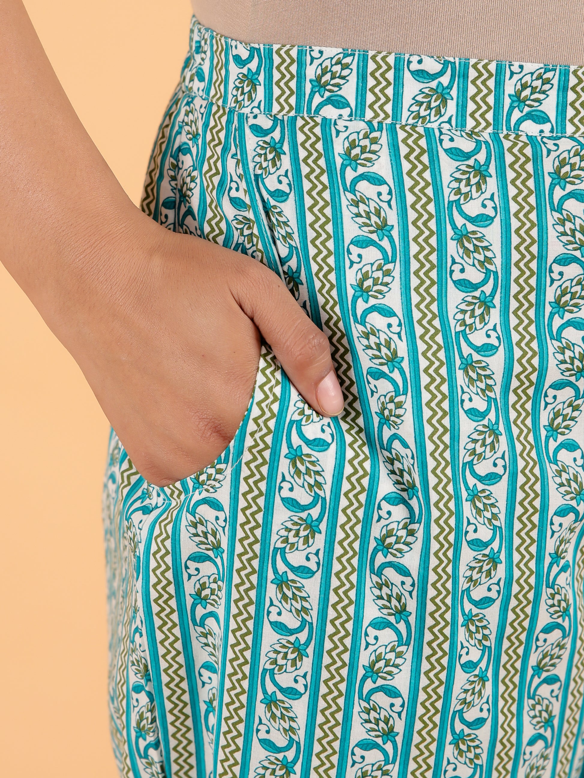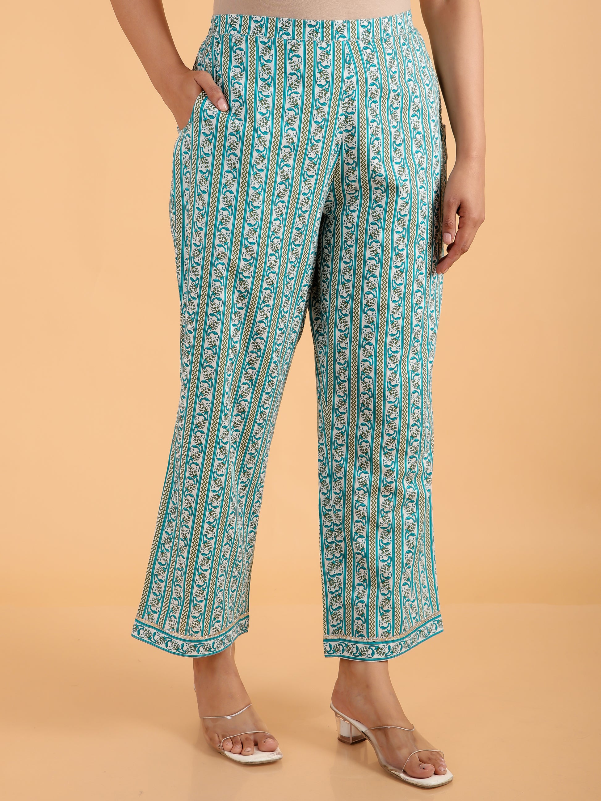 Designed for both comfort and versatility, these Soft Cotton Turquoise bottoms feature a stylish Striped design and pockets for added functionality. Perfect for office looks or weekend errands, they offer a flattering fit that works with a variety of tops. Pair with minimal accessories for a polished finish and enjoy effortless care.