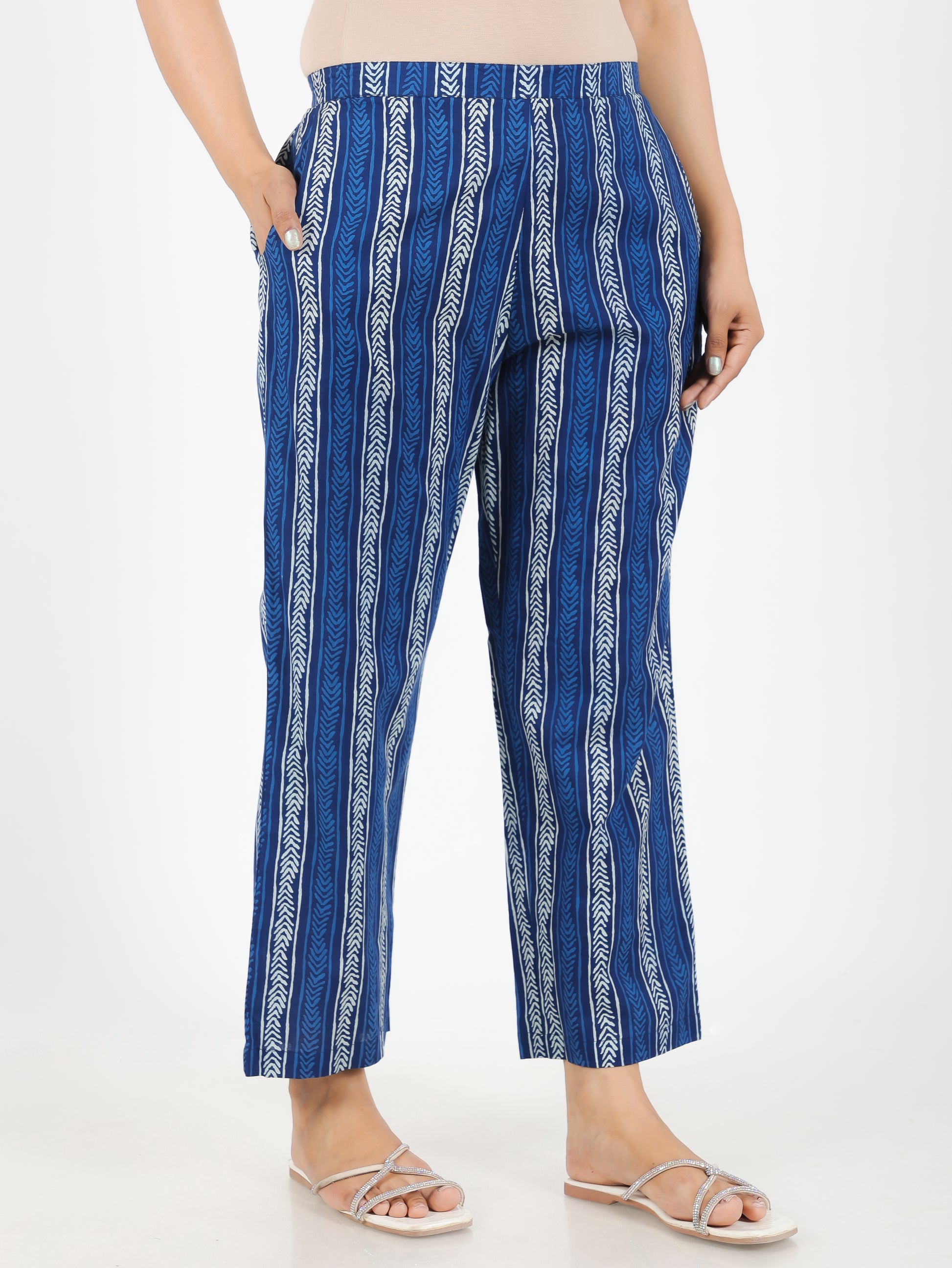 Soft Cotton Striped Indigo Blue Straight Trousers