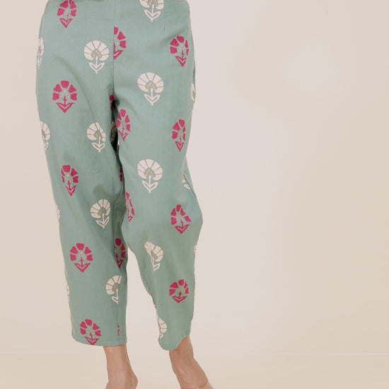 Upgrade your wardrobe with these Green bottoms made from lightweight Linen Cotton. The Floral accents bring subtle charm, while pockets make them practical for all-day wear. Perfect for pairing with ethnic kurtas or western blouses, these bottoms are a go-to choice for comfort and style. Easy care ensures they stay fresh season after season.