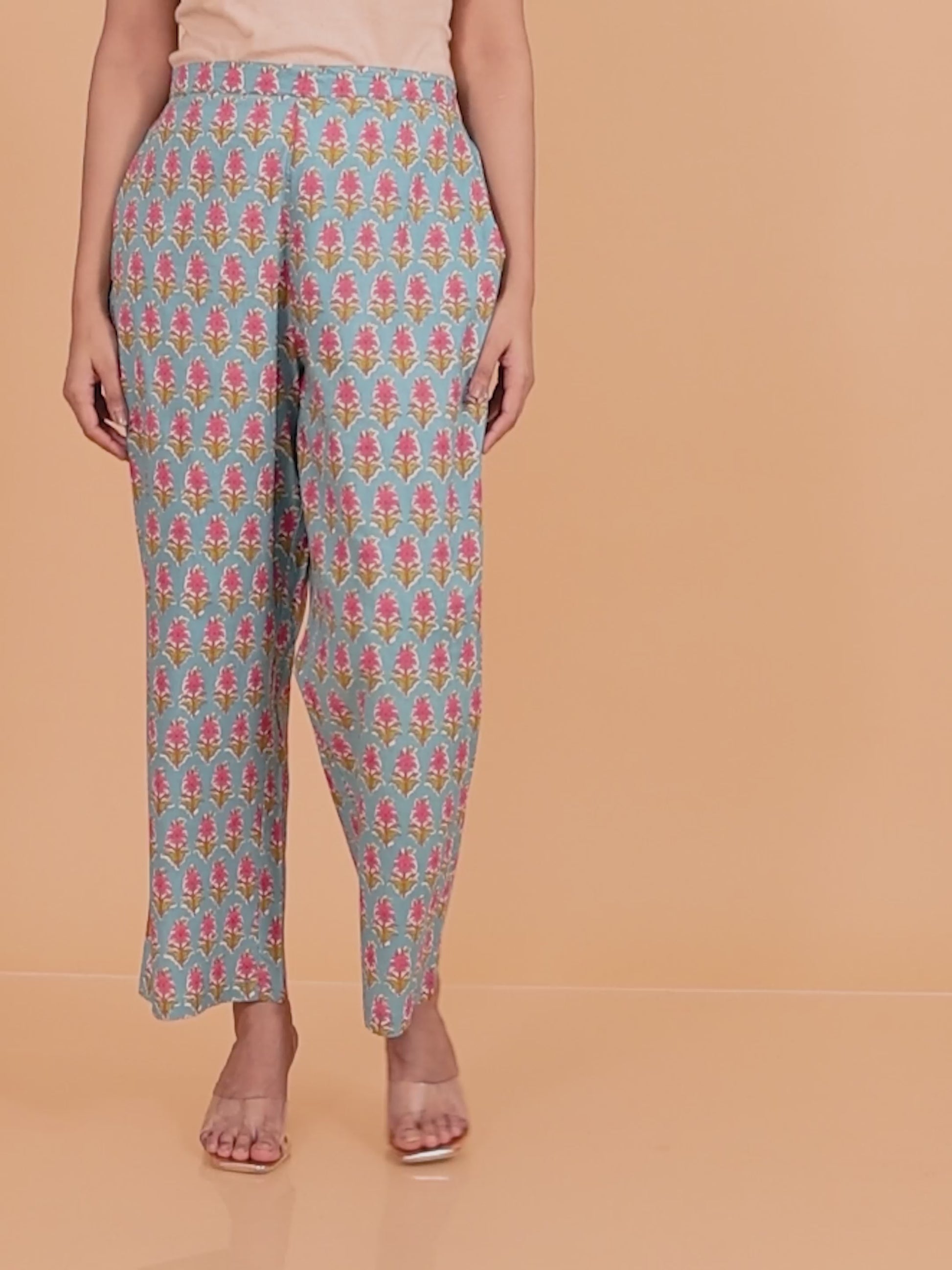 Upgrade your wardrobe with these Green bottoms made from lightweight Soft Cotton. The Floral accents bring subtle charm, while pockets make them practical for all-day wear. Perfect for pairing with ethnic kurtas or western blouses, these bottoms are a go-to choice for comfort and style. Easy care ensures they stay fresh season after season.