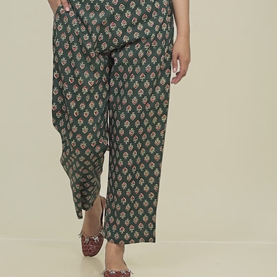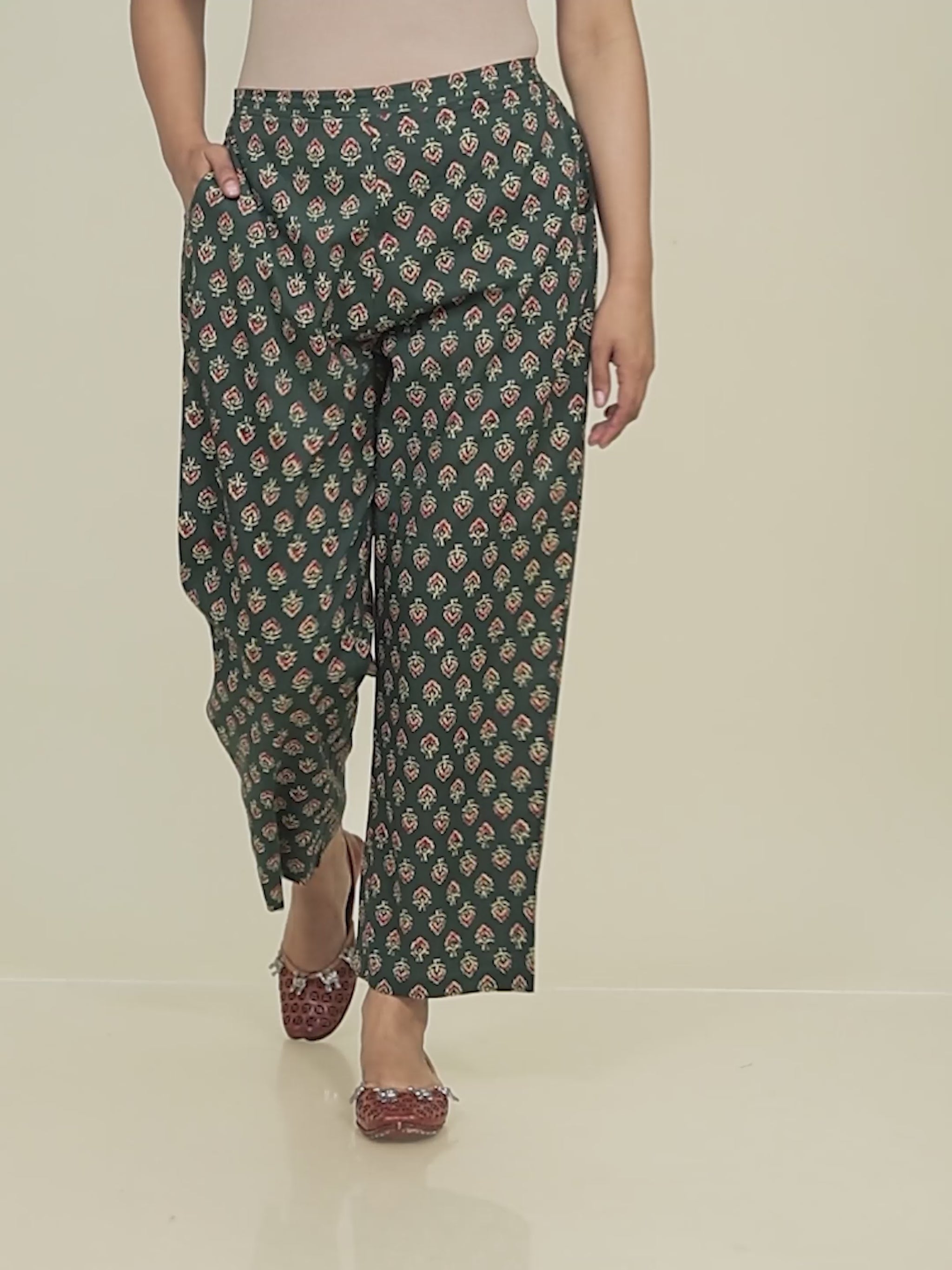 These Green trouser crafted from breathable Soft Cotton combine comfort and style. The Floral pattern adds a modern twist, while pockets make them practical for daily wear. Ideal for casual outings or workdays, they pair effortlessly with kurtas, tops, or tunics. Keep them looking fresh with minimal care and enjoy their all-day ease.