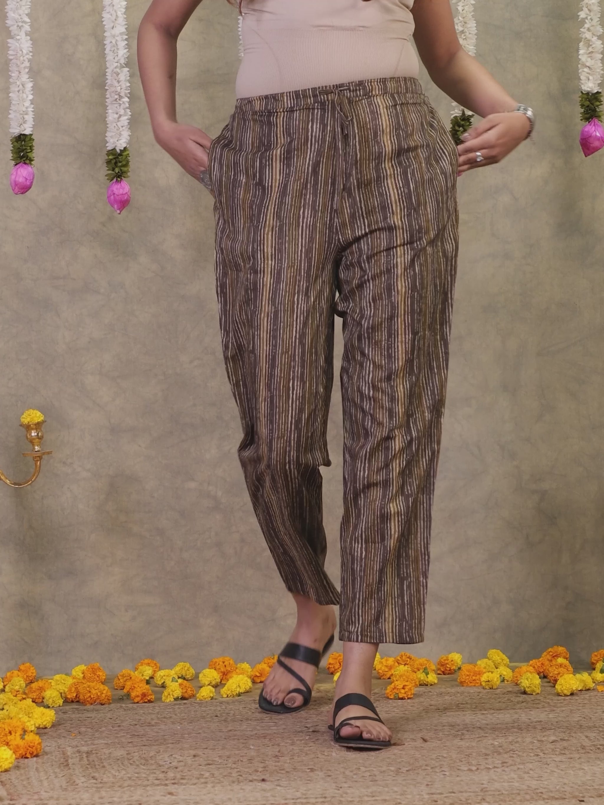 Crafted from Soft Cotton, these Grey bottoms are designed for all-day comfort. The chic Striped work adds flair, and pockets provide convenience for carrying essentials. Great for casual days, shopping trips, or work, these bottoms pair effortlessly with your favourite tops. Their durable design and easy maintenance make them a practical staple.